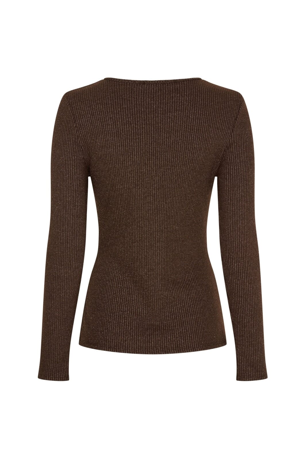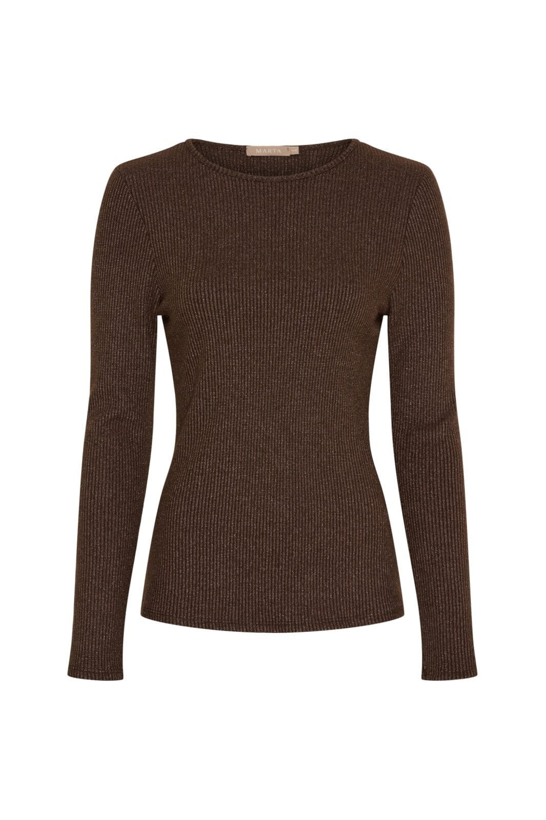 Braunes langärmliges Oberteil von Marta Du Chateau mit Rippstrickstruktur. Das Oberteil hat eine figurbetonte Passform und einen Rundhalsausschnitt.