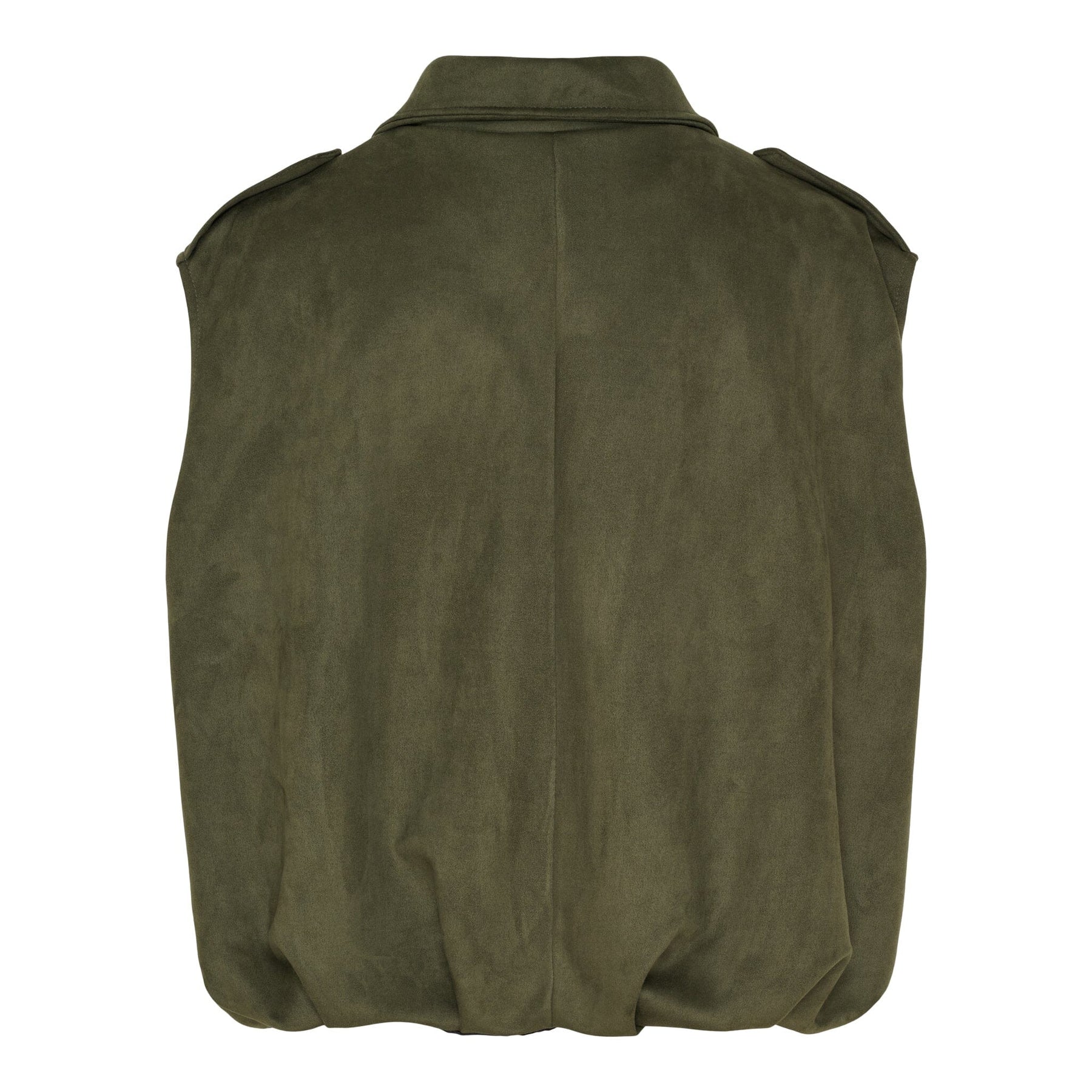 Weste von Marta Du Chateau in Militärgrün. Sie hat einen Hemdkragen, einen Reißverschluss vorne und ein ärmelloses Design mit lockerer Passform.