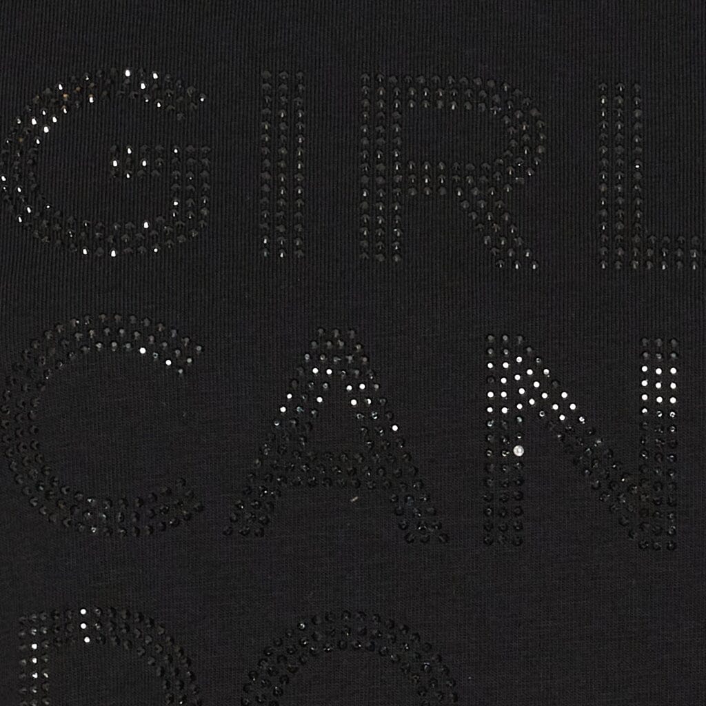 Schwarzes T-Shirt von Marta Du Chateau mit dem Text GIRLS CAN DO ANYTHING in kleinen, glitzernden Pailletten auf der Vorderseite. Das T-Shirt eignet sich sowohl für lässige Alltagskleidung als auch für den Heimgebrauch.
