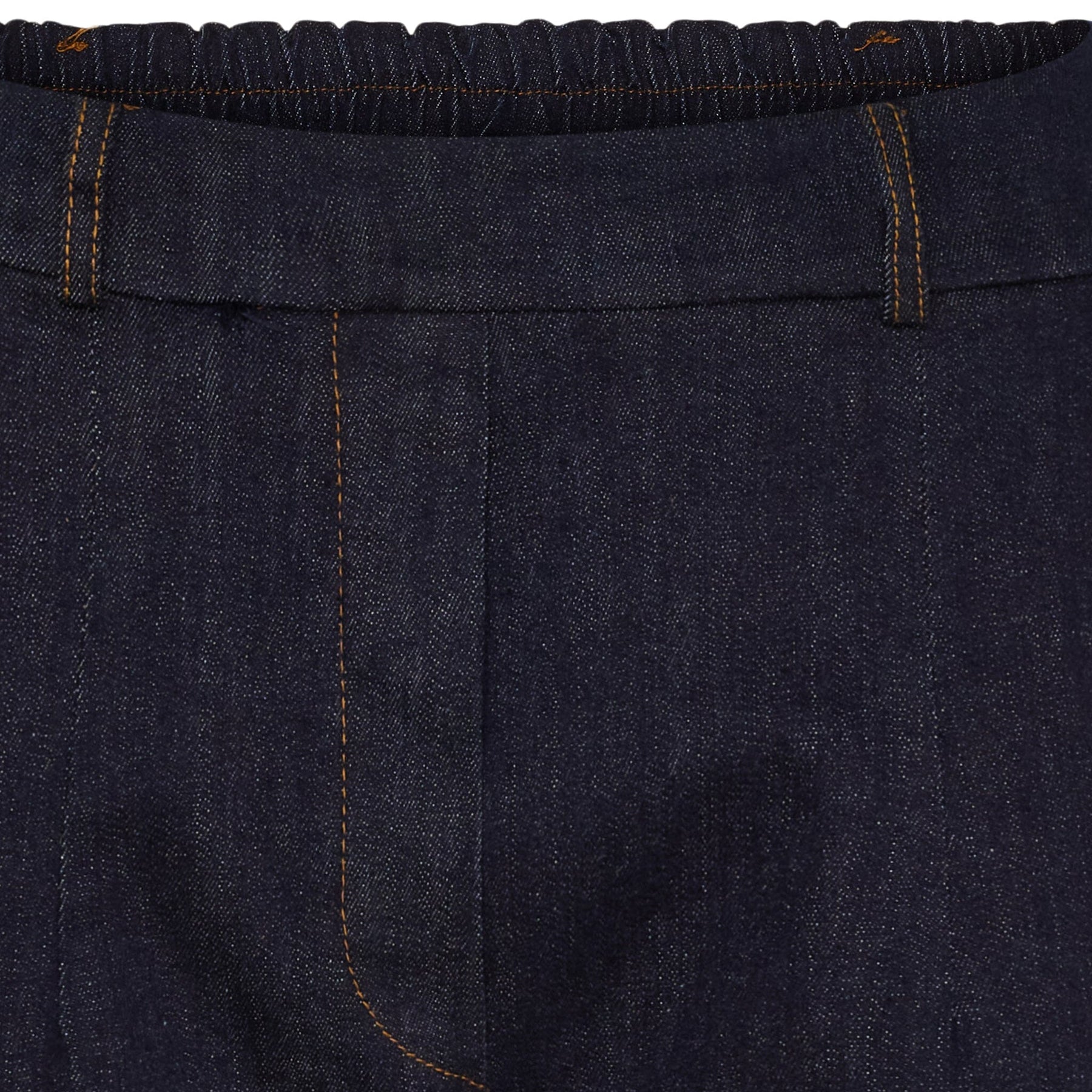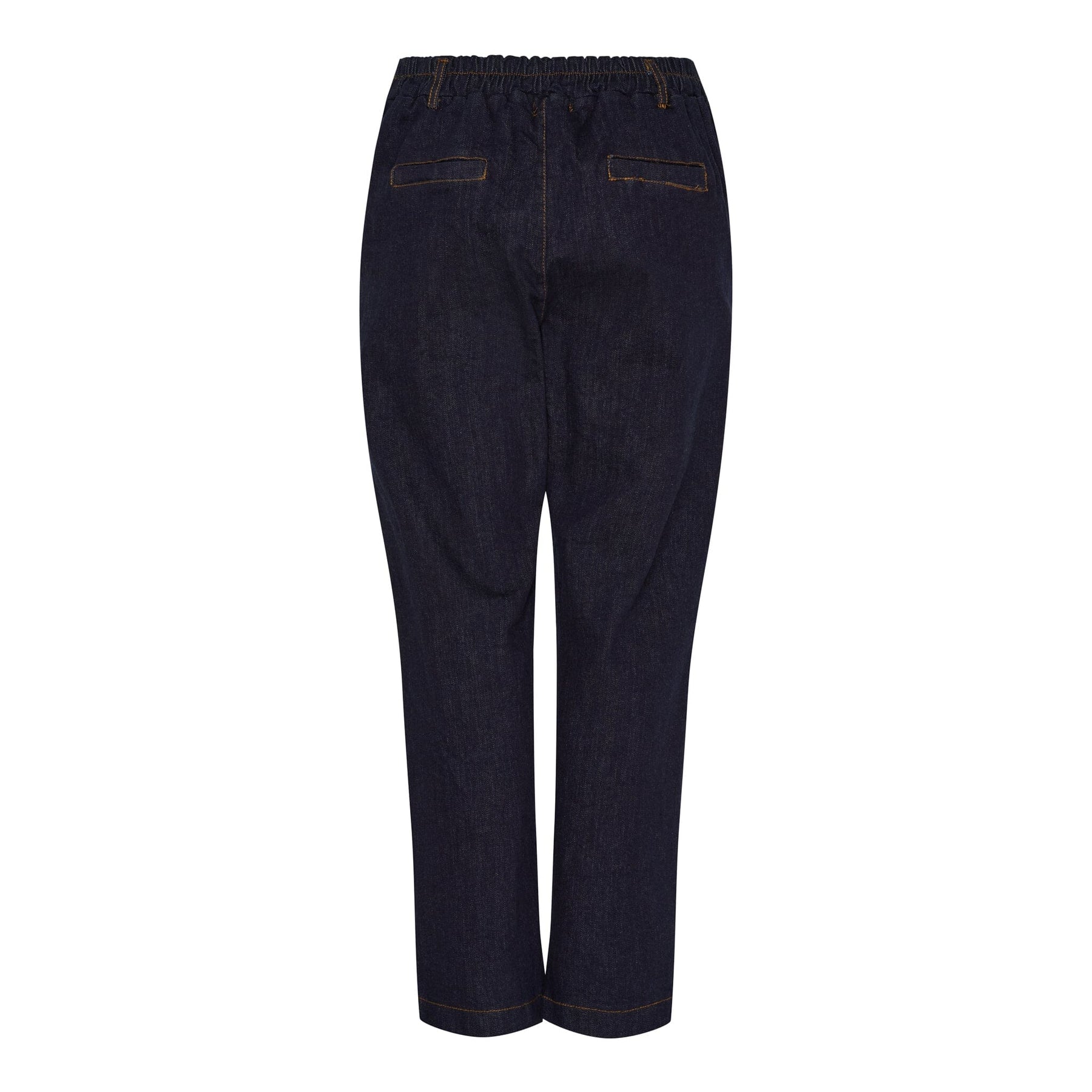 Dunkelblaue Jeans von Marta Du Chateau mit dekorativen Nähten und elastischem Bund. Die Jeans sind für lässigen Gebrauch gemacht.