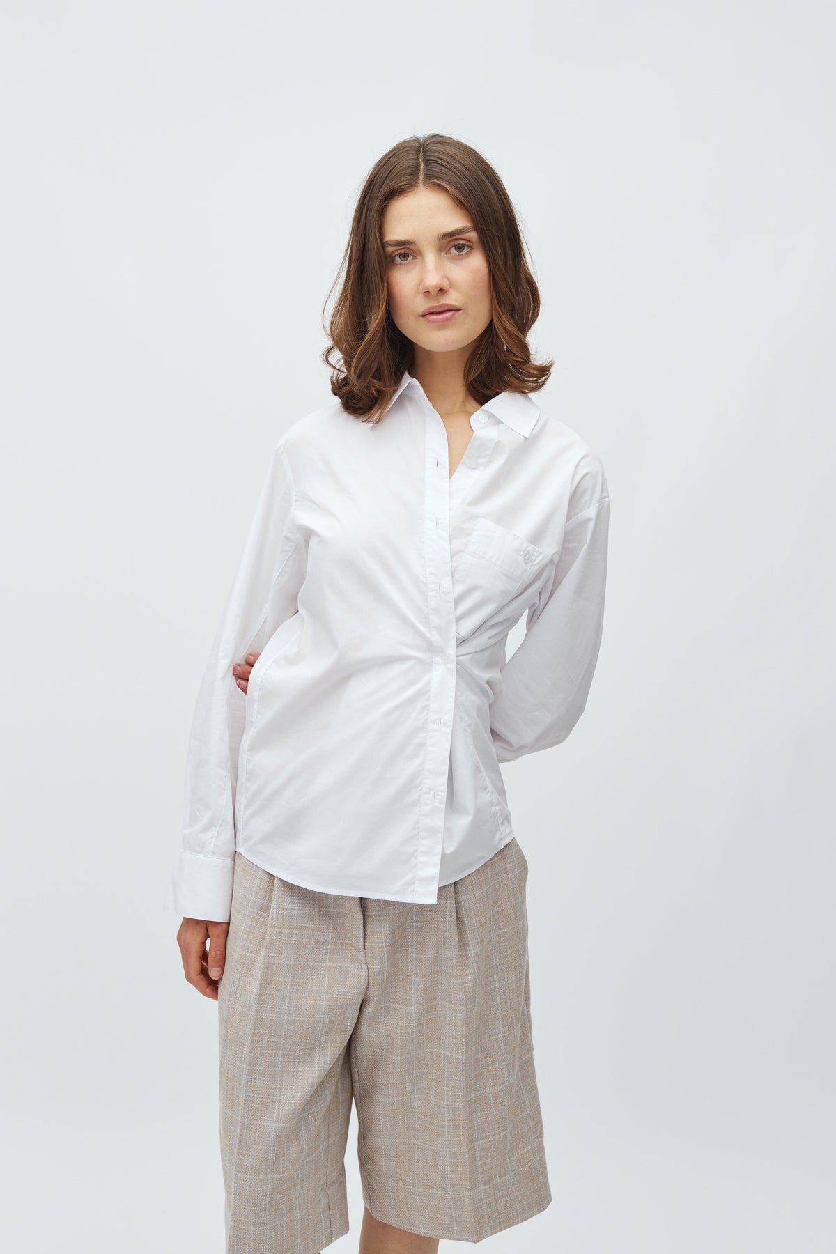 Weißes Hemd von MbyM aus 100 % Baumwolle. Das Hemd hat lange Ärmel, einen Hemdkragen und eine Knopfleiste und eignet sich sowohl für formelle als auch für legere Anlässe.