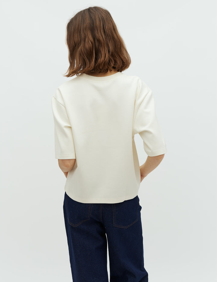 Langärmliges Oberteil von MbyM in einem cremigen Farbton. Das Oberteil hat ein einfarbiges Design und einen Rundhalsausschnitt.
