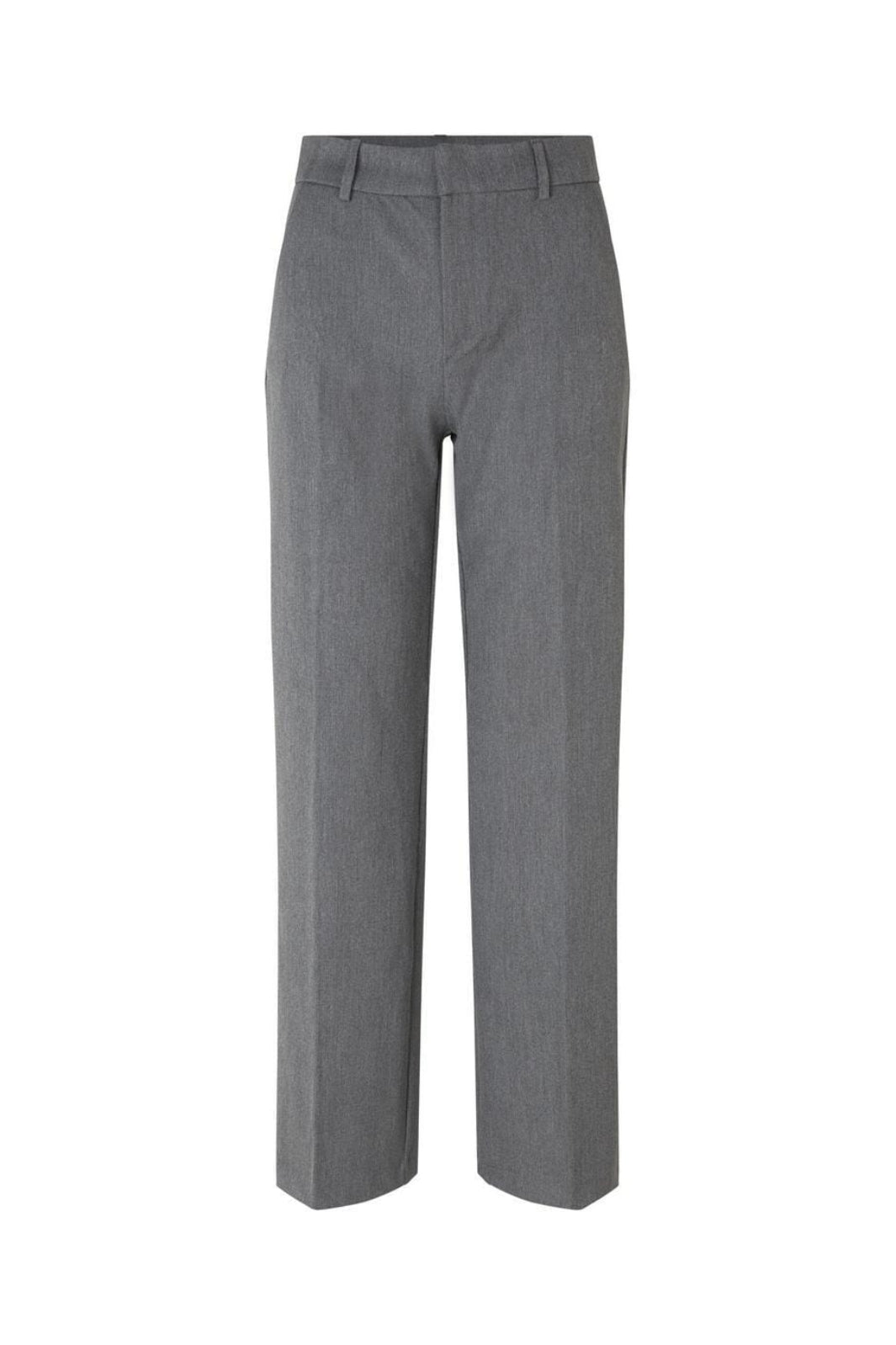 Graue Hosen von MbyM aus meliertem Stoff. Die Hosen haben eine gerade Passform und Knöchellänge mit Vordertaschen. Der Stoff hat eine neutrale Melange-Struktur.