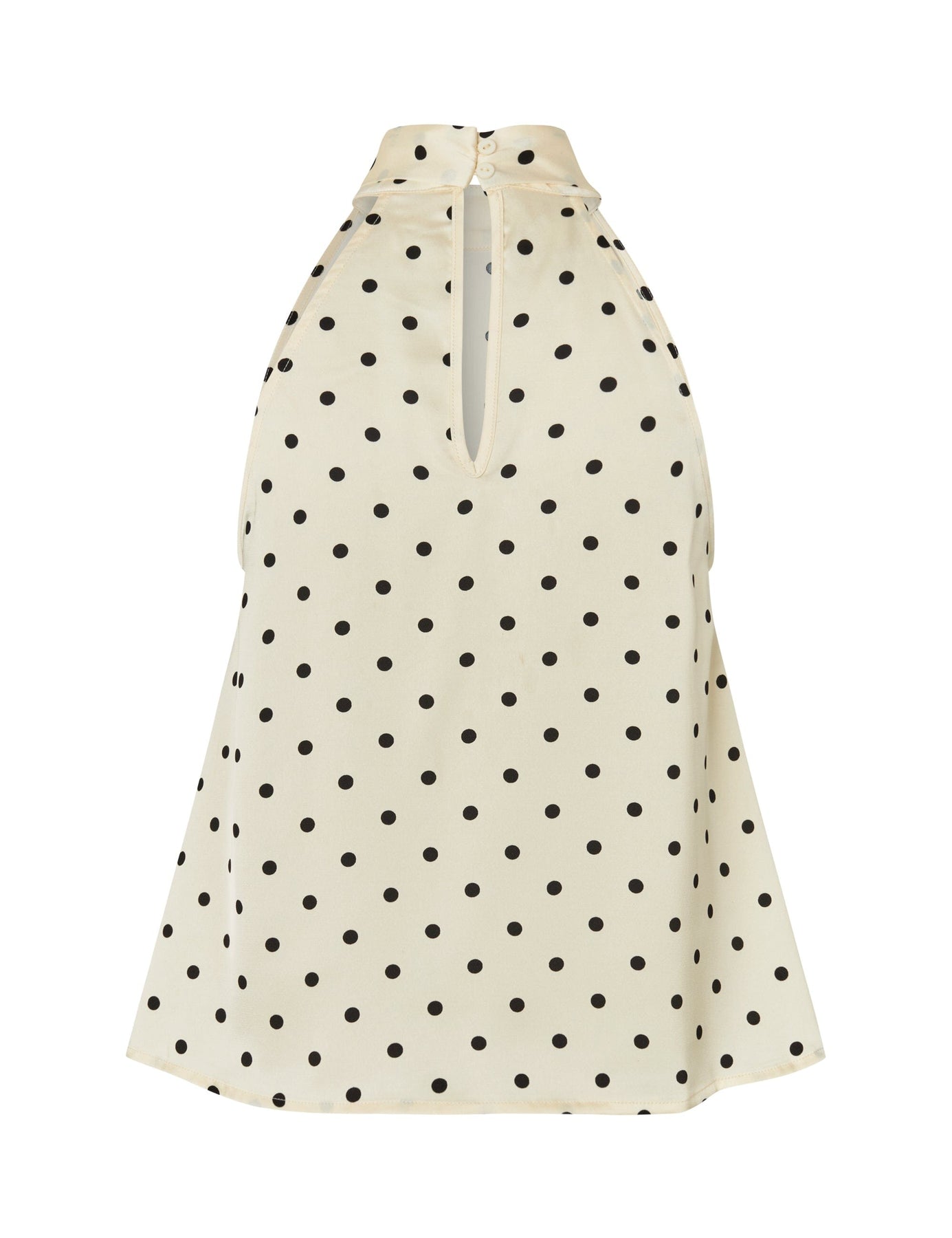 Ärmlose Top von MbyM, cremefarben mit schwarzen Punkten. Das Top hat eine lockere Passform und Bindebänder am Halsausschnitt.
