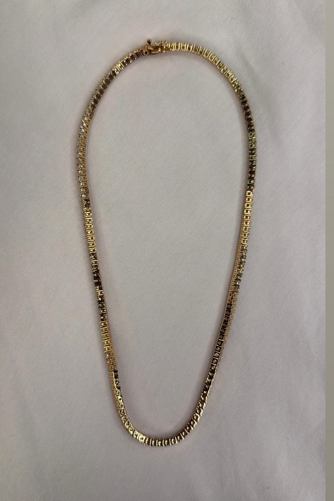 Vergoldetes Schmuckset von Molly&My Jewellery mit klaren Steinen über die gesamte Länge. Das Set besteht aus einer Halskette und einem Armband mit goldfarbener Oberfläche.