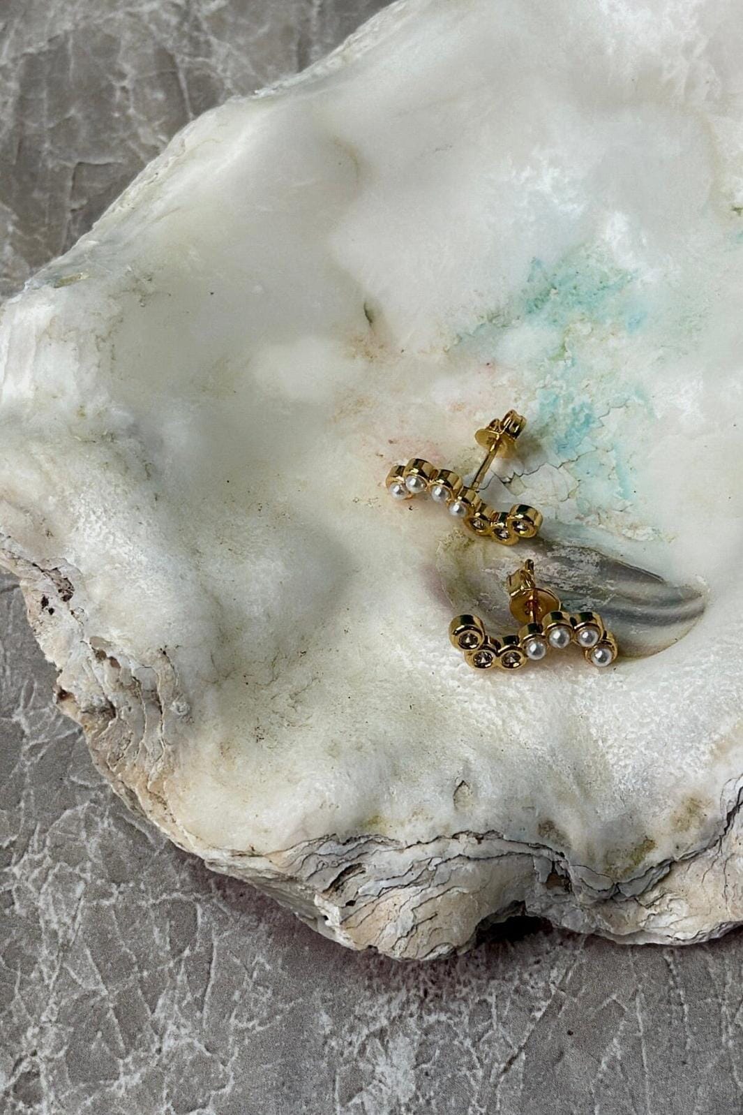 Wellenförmige Ohrringe von Molly&My Jewellery x Melanie Due, gefertigt aus Edelstahl mit vergoldetem Finish.