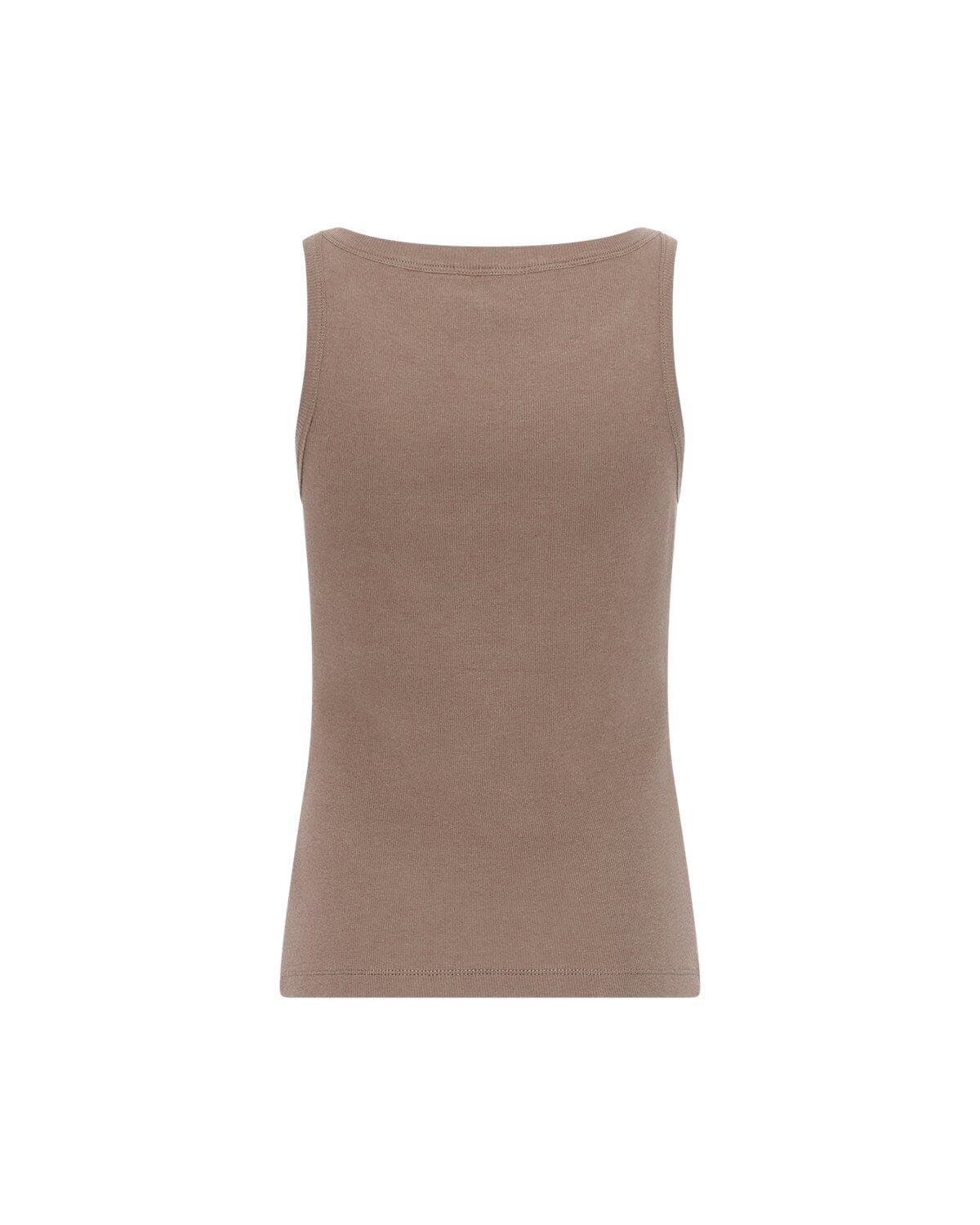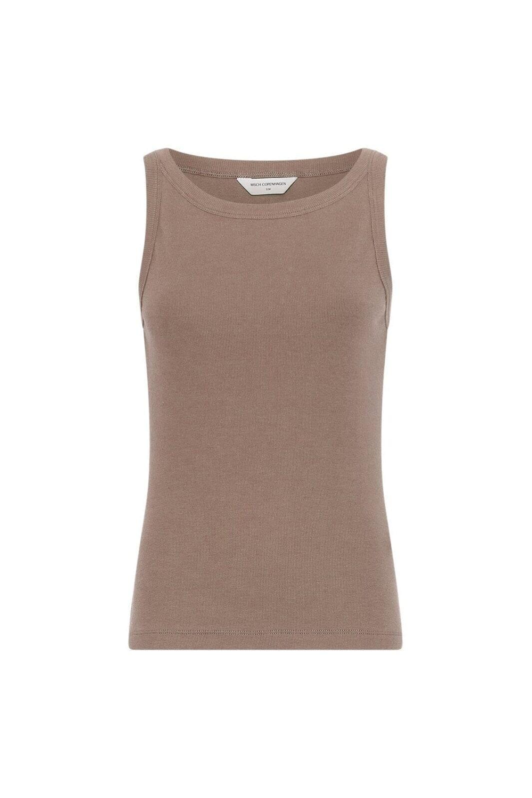 Ärmelloses Top von MSCH Copenhagen in einem neutralen Braunton. Das Top besteht aus Bio-Baumwolle und hat eine Slim-Fit-Passform mit rundem Halsausschnitt.