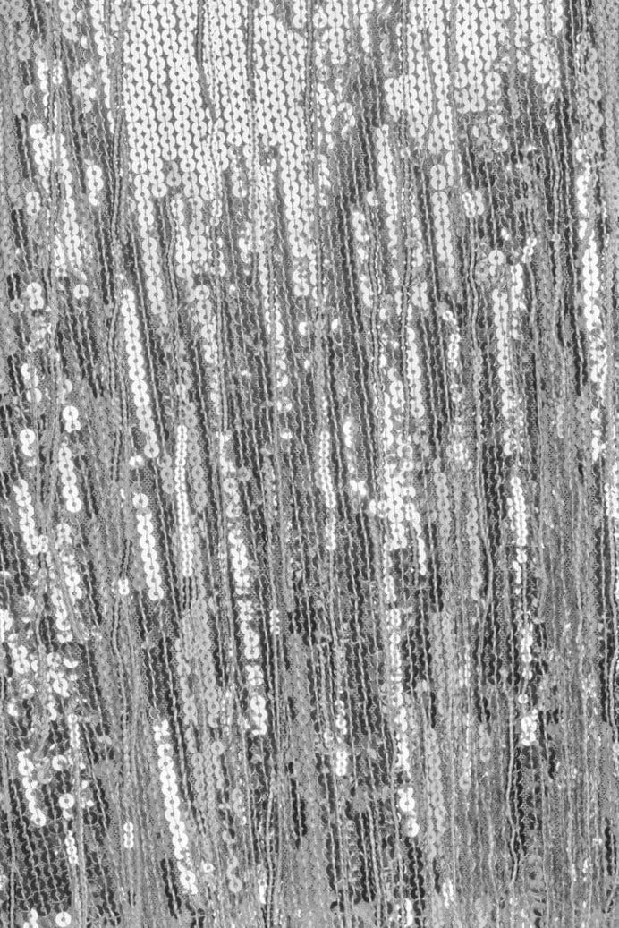 Silberfarbige Bluse von Moves by Minimum mit Pailletten und Fransen. Das kurze Modell hat einen Rundhalsausschnitt und kurze Ärmel mit einer lockeren Passform, die gute Bewegungsfreiheit bietet.