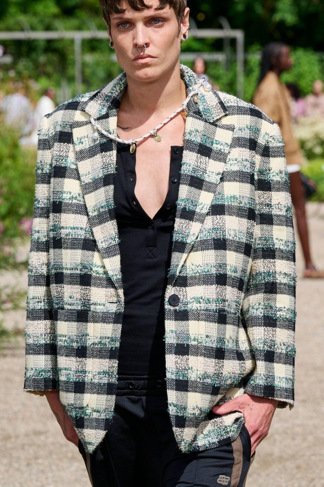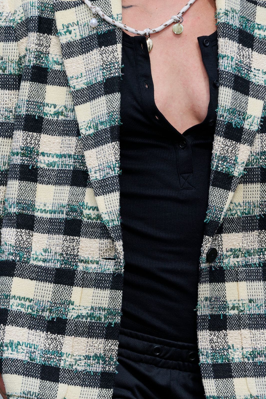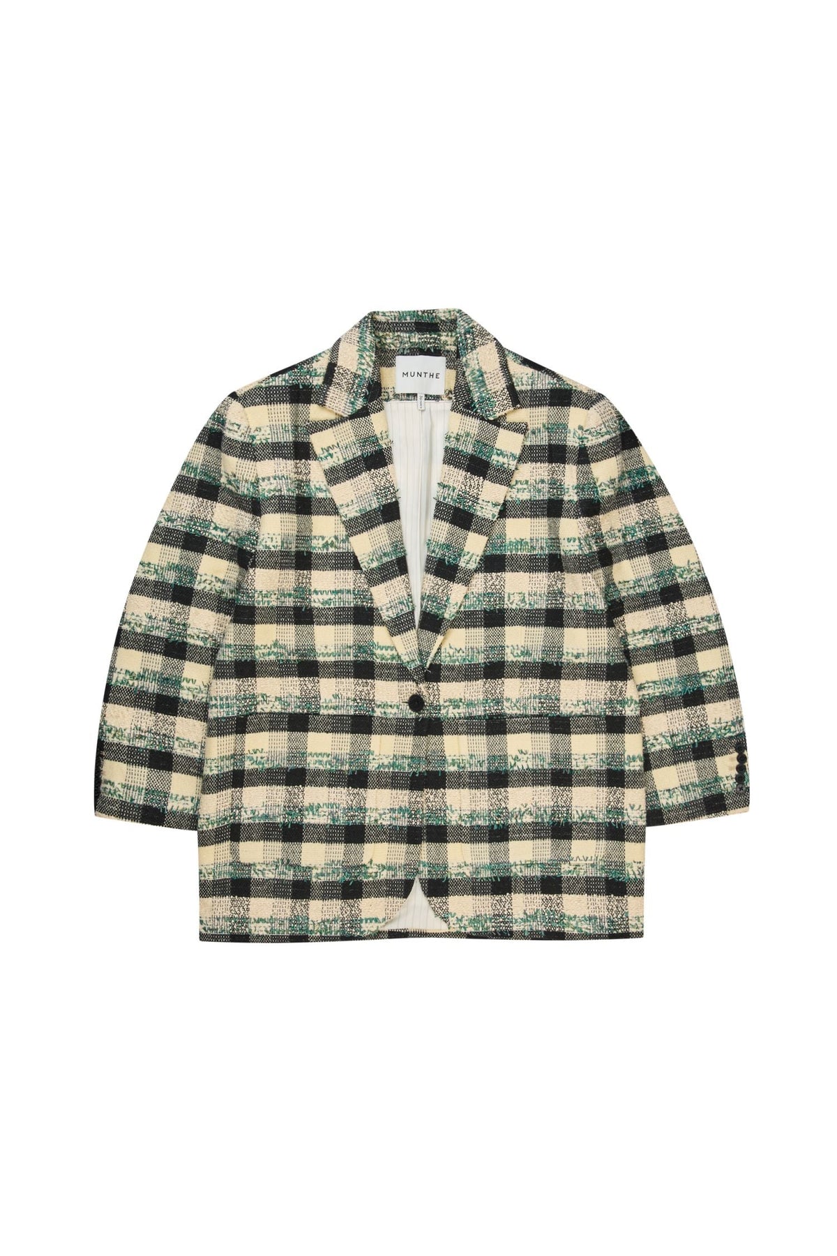 Kariertes Blazer von Munthe in Schwarz, Creme und Weiß. Der Blazer hat eine leicht oversized Passform und besteht aus einer weichen, gewebten Qualität mit 53 % Polyester, 33 % Acryl und 14 % Wolle.