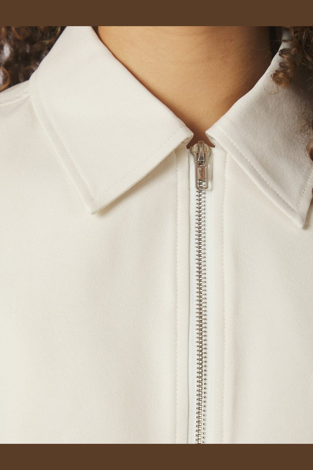 Weiße strukturierte Jacke von Neo Noir aus einer festen Baumwollqualität. Die Jacke hat einen klassischen Kragen und wird vorne mit einem Reißverschluss geschlossen.