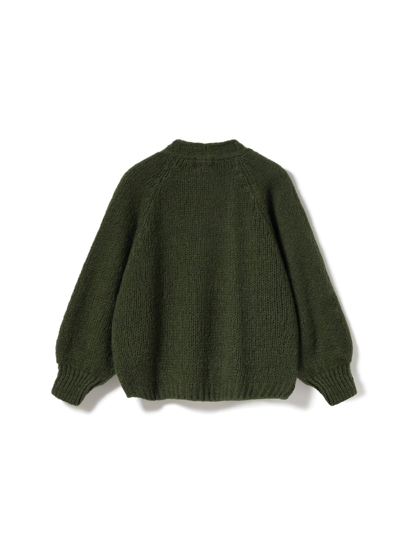 Strickjacke von Noella in dunkelgrün. Sie hat eine lockere Passform mit Puffärmeln und offener Front, gestrickt aus einer Mischung aus Acryl, Wolle, Nylon und Mohair.