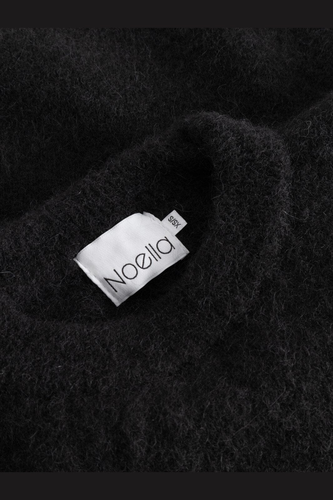 Schwarzer Strickpullover von Noella mit einer weichen und flauschigen Oberfläche. Entworfen mit Puffärmeln und verkürzter Länge für einen modernen Stil.