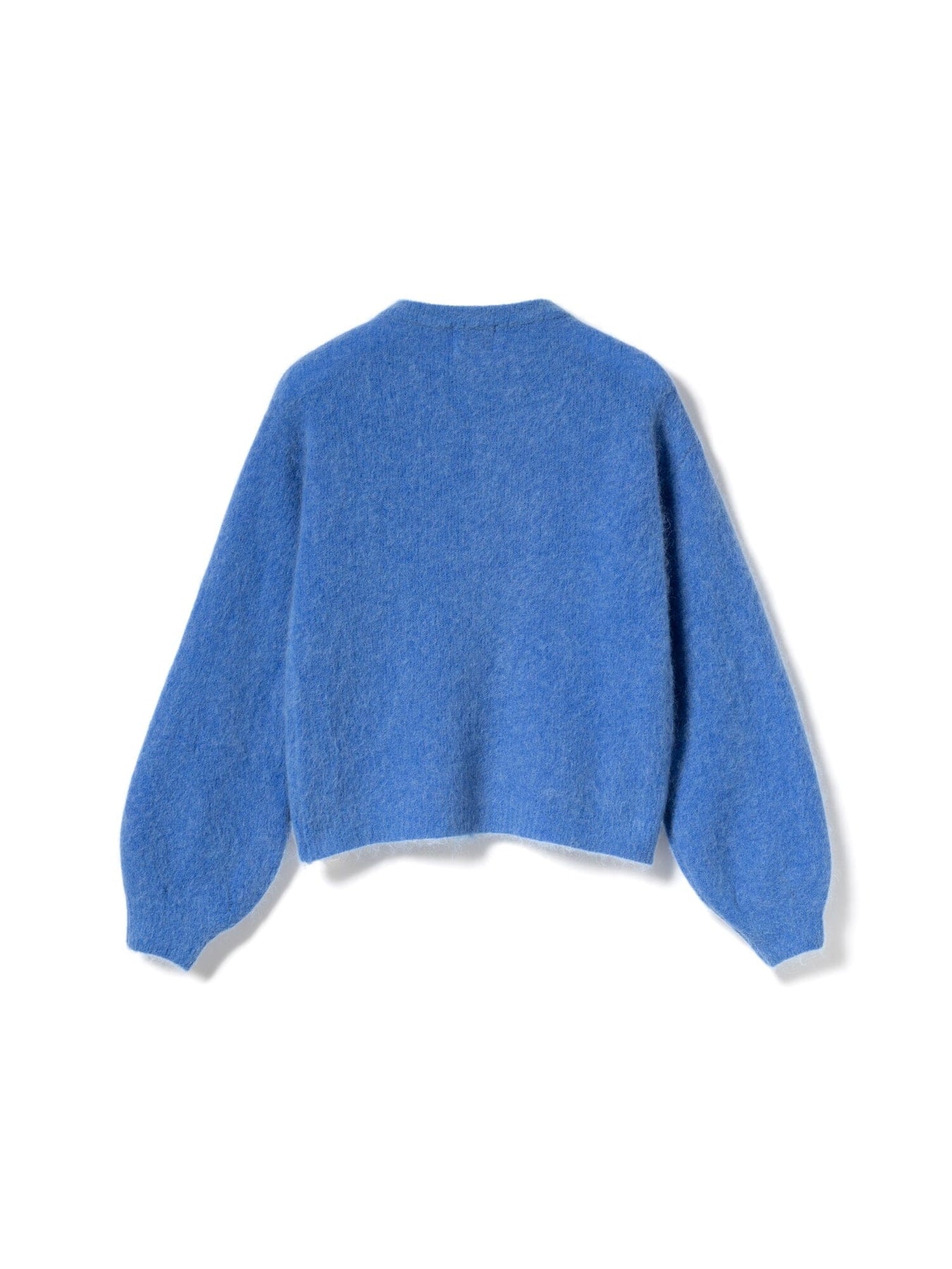 Strickjacke von Noella in einem hellblauen Farbton. Sie hat einen runden Halsausschnitt und eine Knopfleiste vorne mit hellen Knöpfen. Die Ballonärmel und die kurze Länge verleihen der Jacke eine besondere Note.