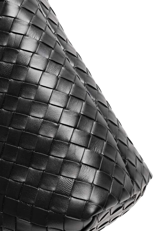 Schwarze Tasche von Noella mit geflochtener Oberfläche und geräumigem Innenraum. Die Tasche hat Innentaschen zur Organisation des Inhalts und wird mit einem Reißverschluss geschlossen.