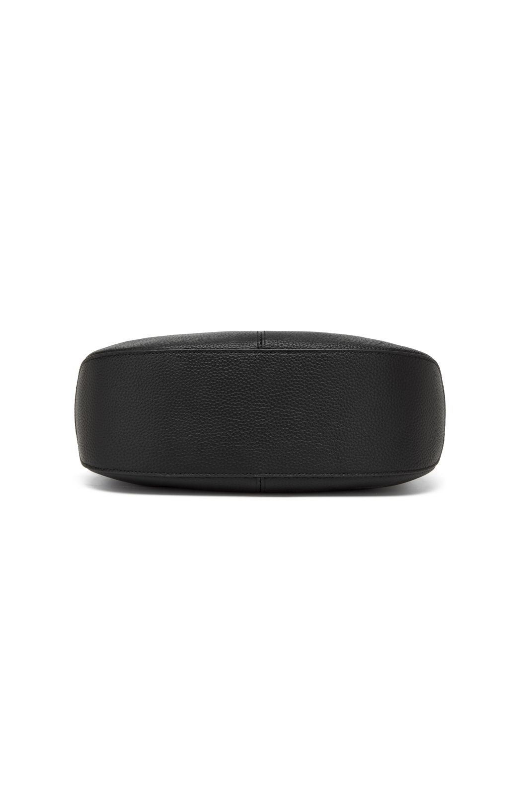 Schwarze Schultertasche von Noella, aus echtem Leder mit einer leicht feinkörnigen Oberfläche. Die Tasche hat einen einzelnen Riemen und einen abgerundeten Boden.