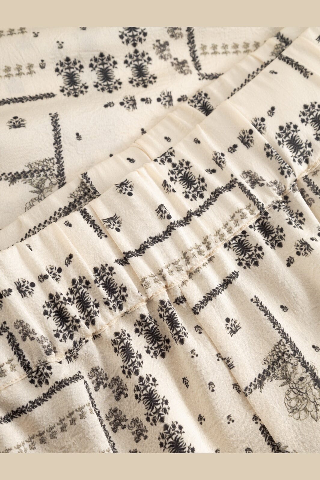 Hose von Noella in einem elfenbeinfarbenen Ton mit geometrischem und floralem Print. Die Hose hat ein weites Bein und eine hohe Taille.