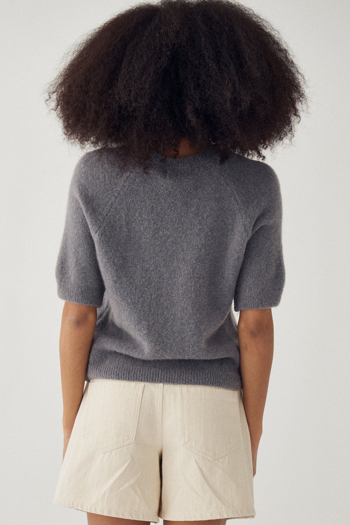 Kurzärmeliger Strickpullover von Noella in dunkelgrau meliert. Hergestellt aus einer Mischung aus superfeiner Alpakawolle, Polyamid, Wolle und Elasthan. Geeignet für den lässigen Alltag und für zu Hause.