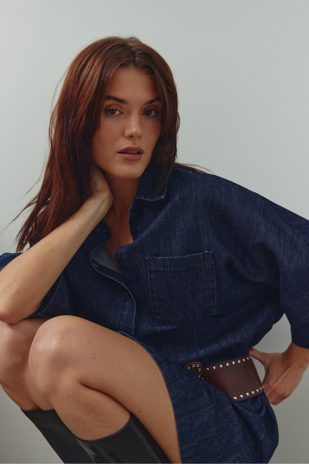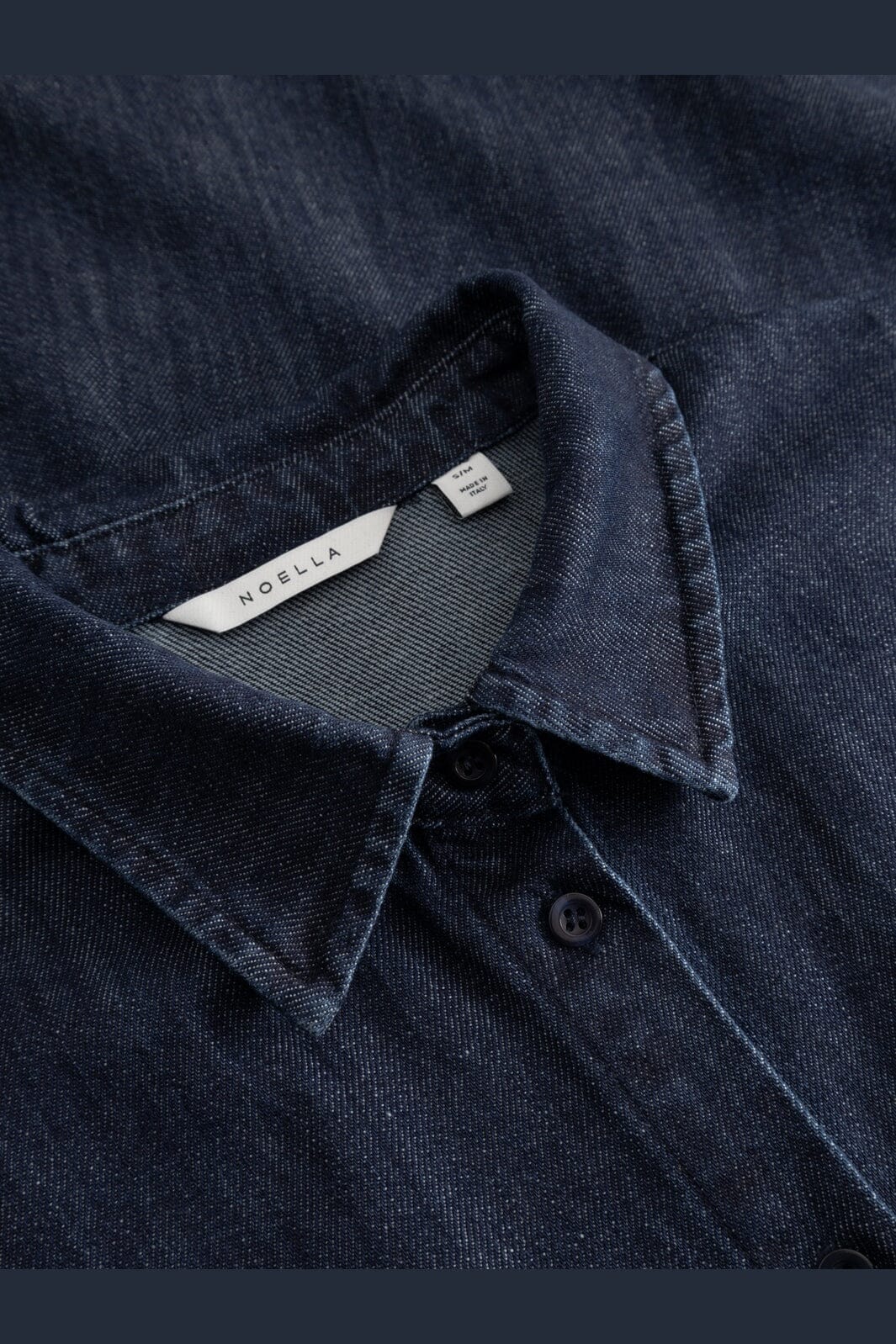 Blaues Denimkleid von Noella aus 100 % Baumwolle. Das Kleid hat eine lockere Passform, kurze Ärmel und einen klassischen Kragen mit Knopfleiste vorn.