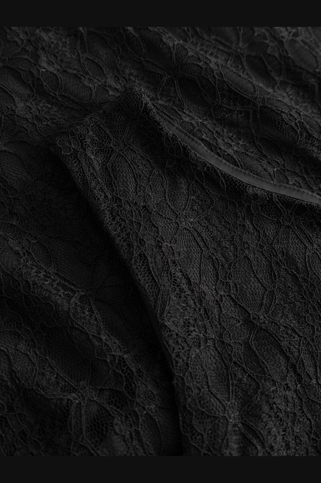 Schwarzes Kleid von Noella aus Spitze. Das Kleid eignet sich für Hochzeiten, Partys und formelle Anlässe mit seinem Off-Shoulder-Design und dem asymmetrischen Schnitt.