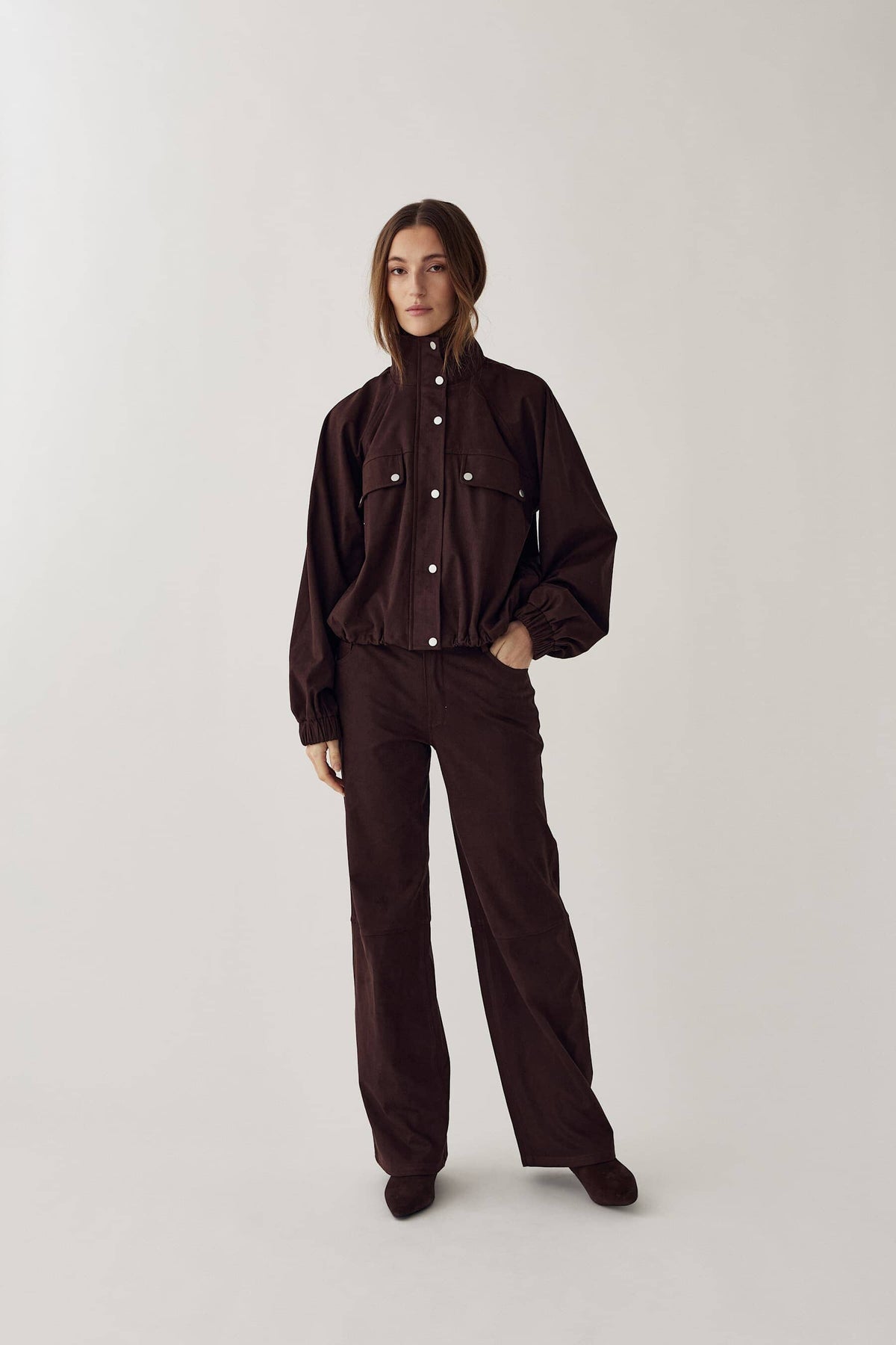 Jacke von Noella in dunkelbrauner Farbe. Hergestellt aus 90% Polyester und 10% Elasthan mit dekorativen Nähten und einer lockeren Passform.