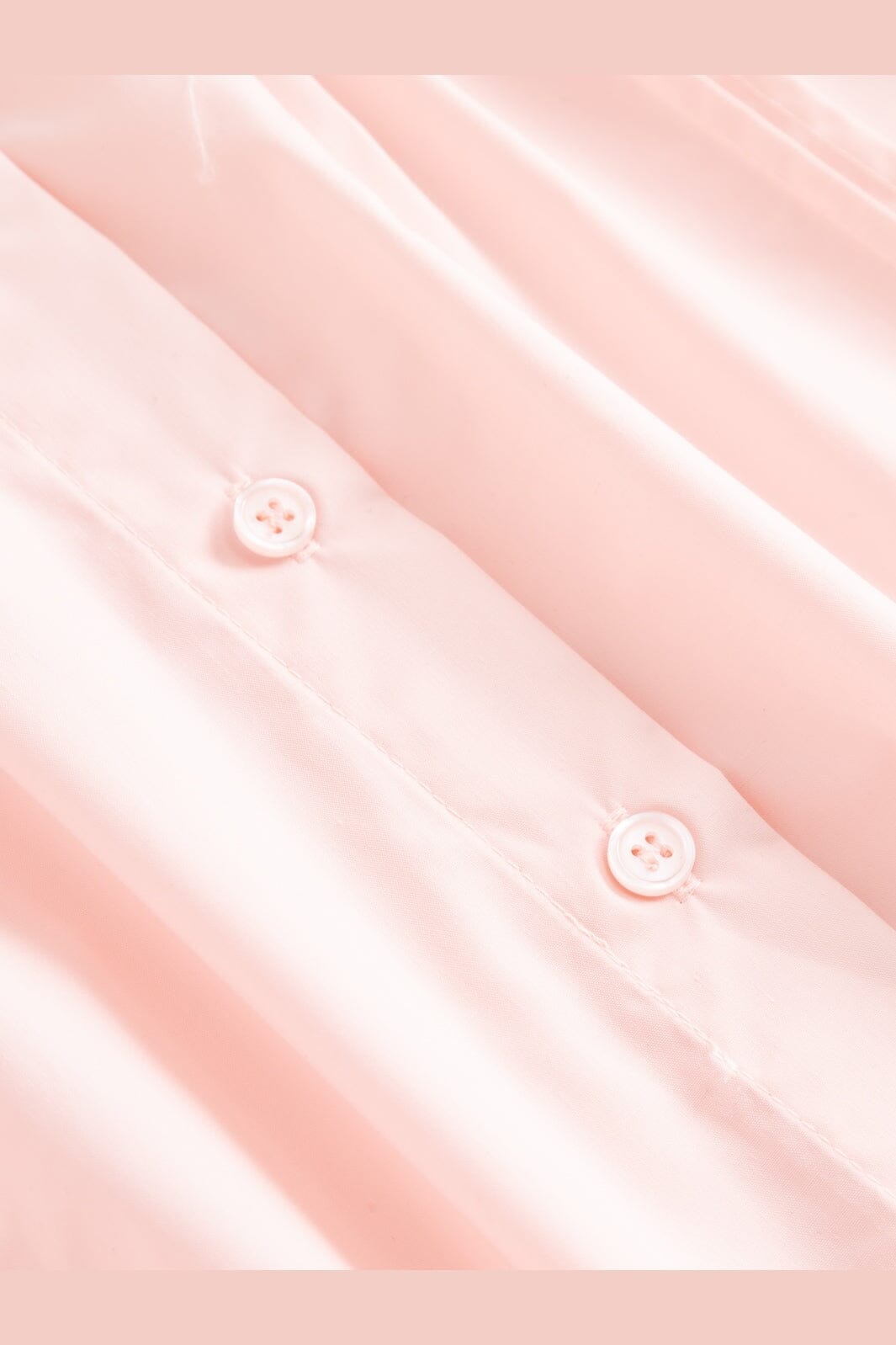 Rosa Bluse von Noella mit hohem Kragen und Knopfverschluss. Die Bluse hat plissierte Details an der Brust und lange Ärmel mit schmalen Manschetten.