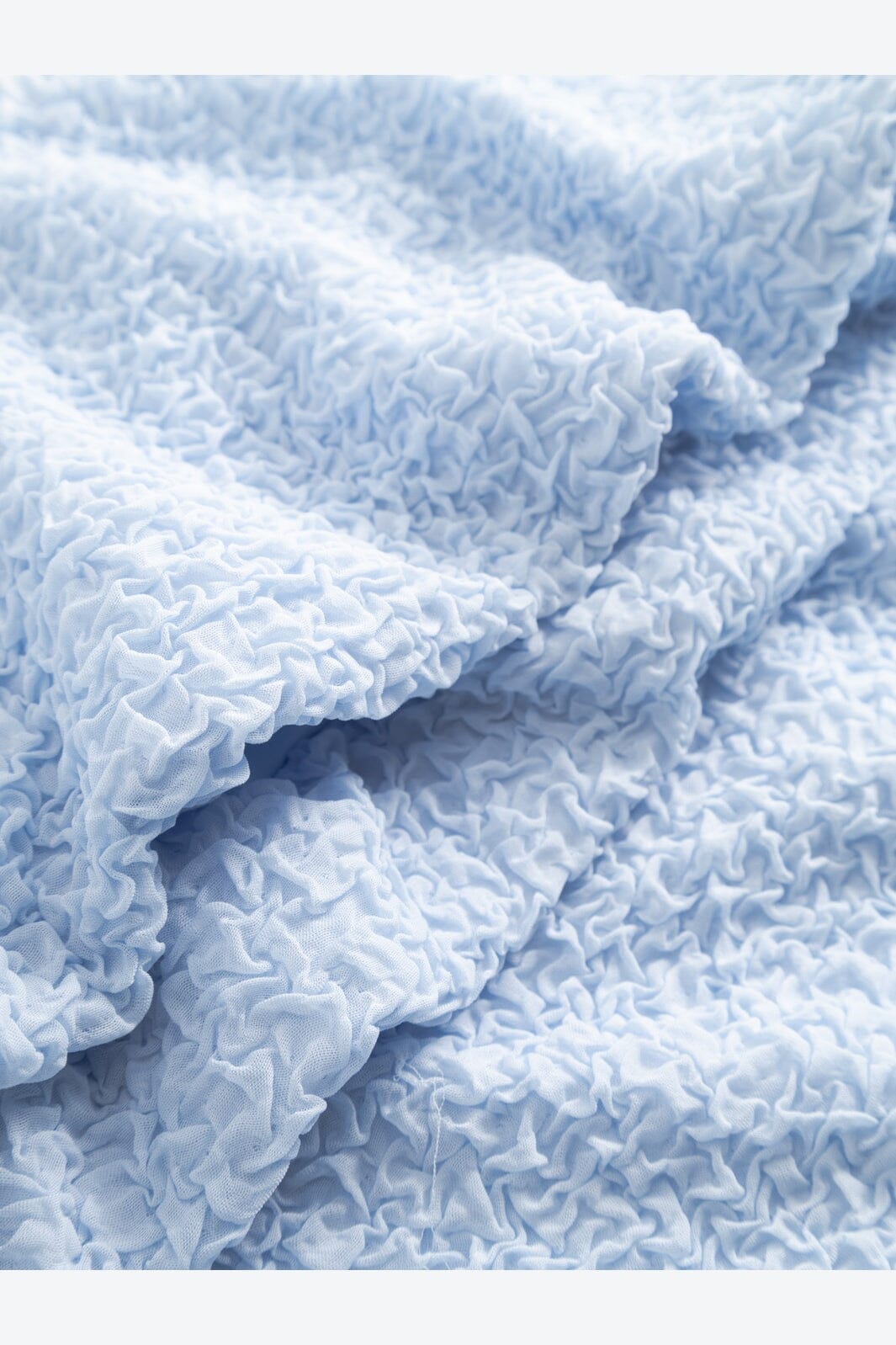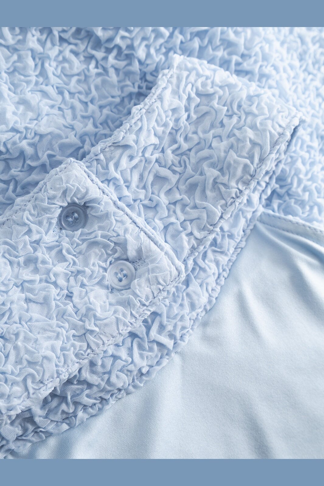 Hellblaue Top von Noella, gefertigt aus 95 % Polyester und 5 % Elasthan. Der Stoff hat eine geknitterte Struktur, die dem Top Tiefe verleiht.