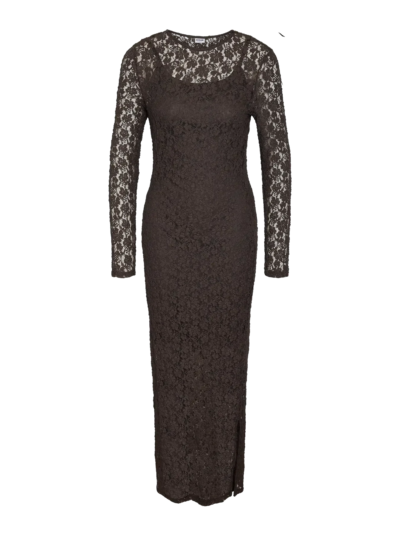 Noisy May Noisy May - Nmmiriam L/S Maxi Lace Dress Farbe: 5064757 Chocolate Brown