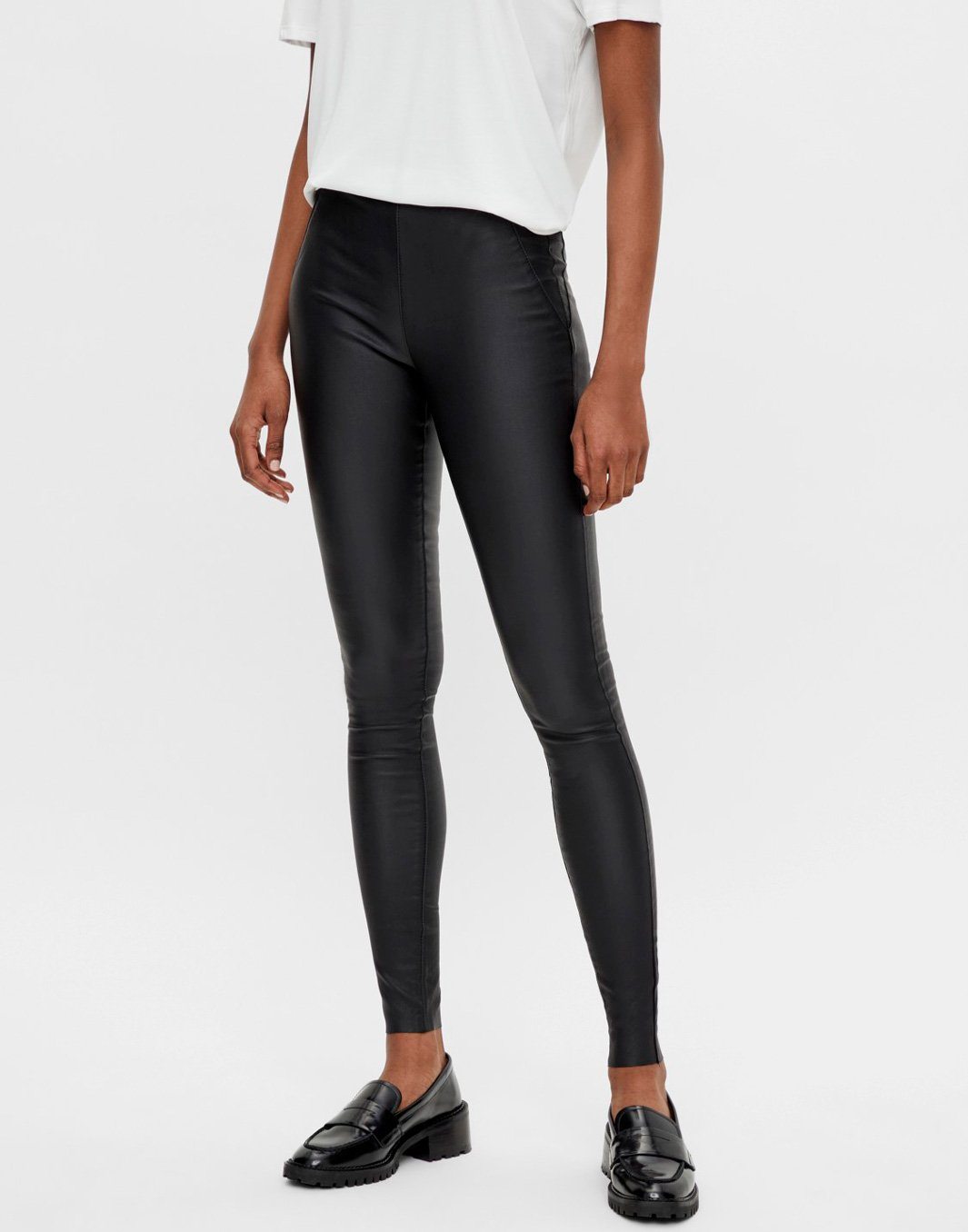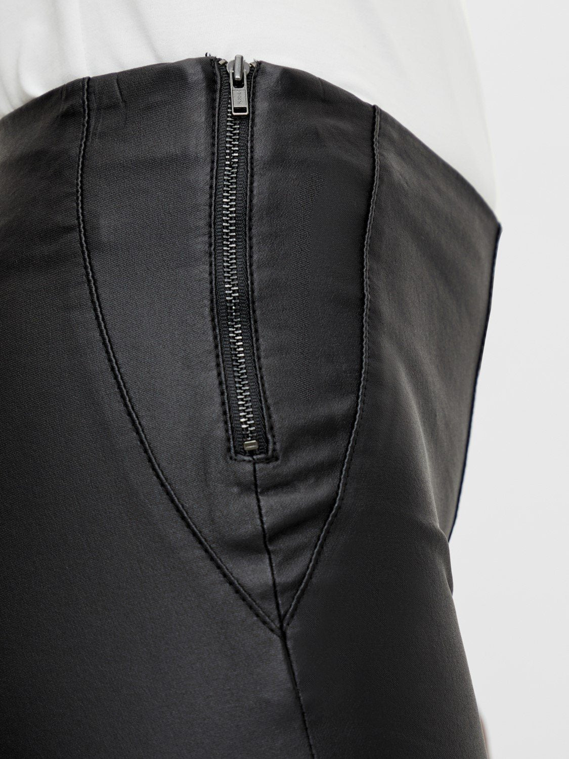 Schwarze Leggings von Object mit beschichteter Oberfläche und seitlichem Reißverschluss. Das beschichtete Material verleiht einen lederähnlichen Look, und die Leggings haben eine Slim-Fit-Passform.