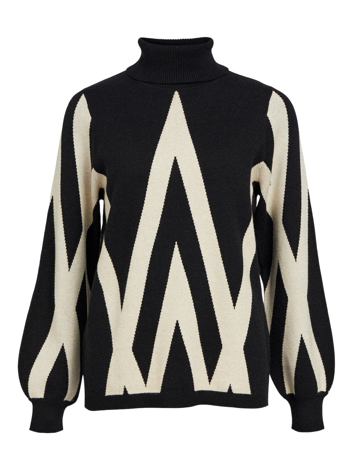 Object Object - Objray L/S Knit Rollneck Pullover Farbe: 4415476 Black Sandshell Graphic