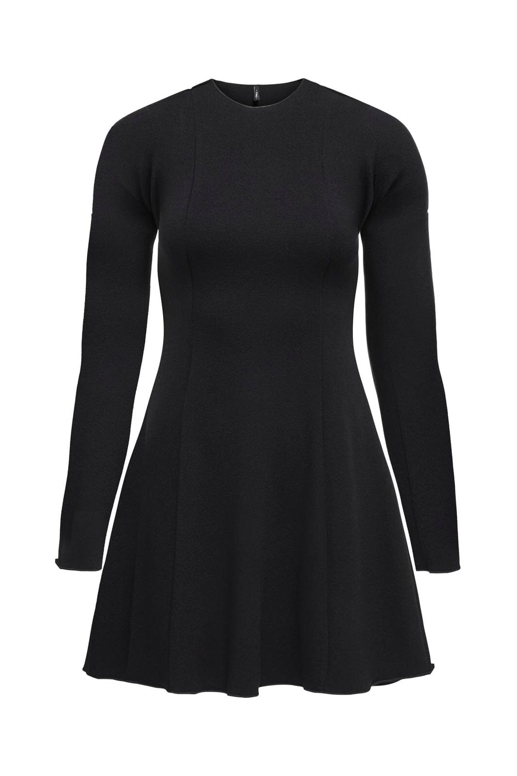 Schwarzes Kleid von Only mit langen Ärmeln und rundem Ausschnitt. Das Kleid hat eine reguläre Passform und reicht bis zu den Knien. Es besteht aus einem weichen Material mit leichtem Stretch.