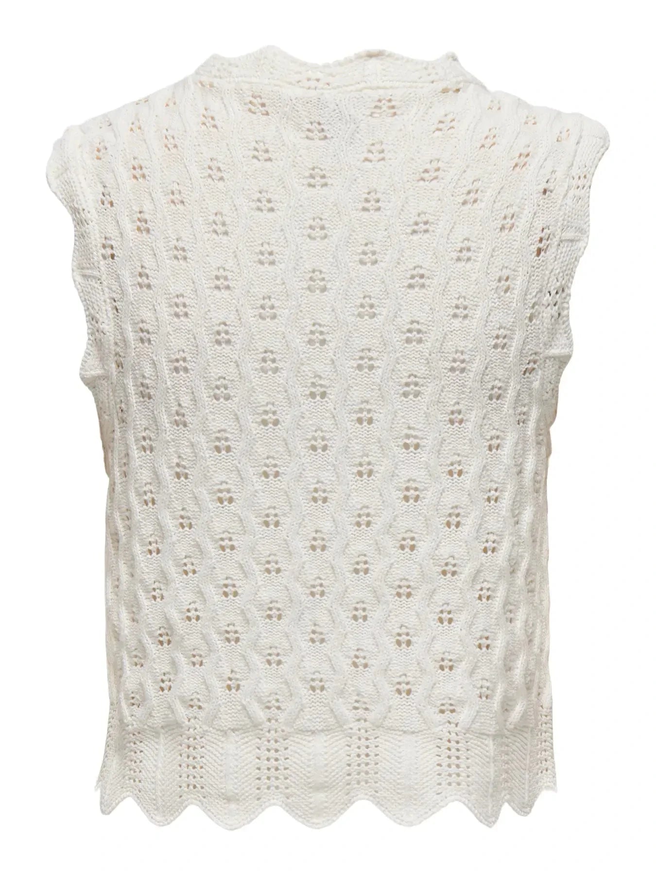 Gestricktes Top von Only in einem Off-White-Ton. Das Top hat dekorative Nähte und Spitze sowie ein Muster mit kleinen Löchern.