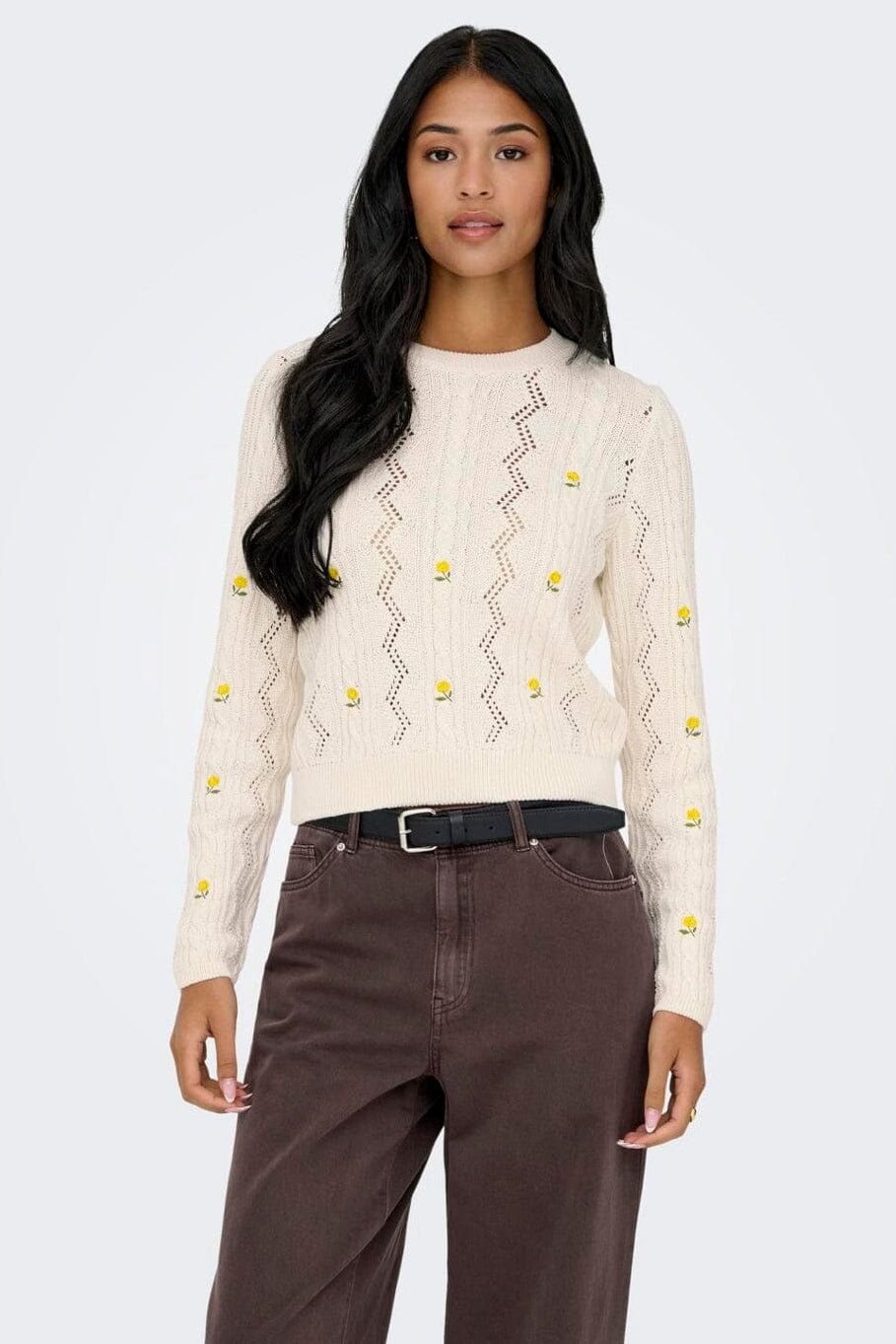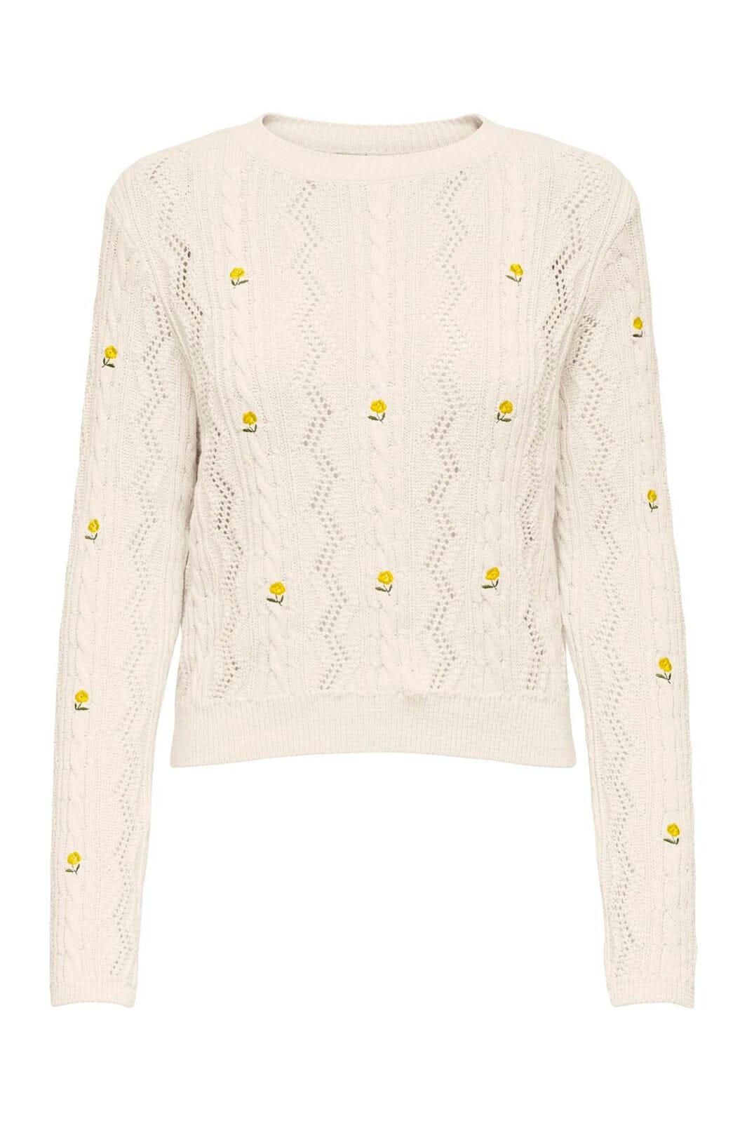 Only Only - Onlrita Life Ls Embr Cable Knt Farbe: 4862605 Ecru Yellow Flower