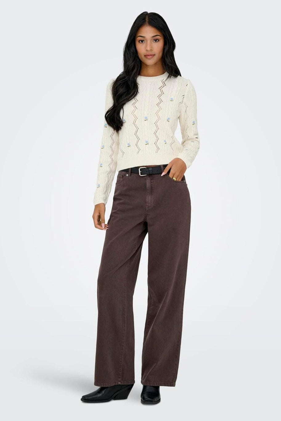 Only Only - Onlrita Life Ls Embr Cable Knt Farbe: 4862606 Ecru Cashmere Blue Flower