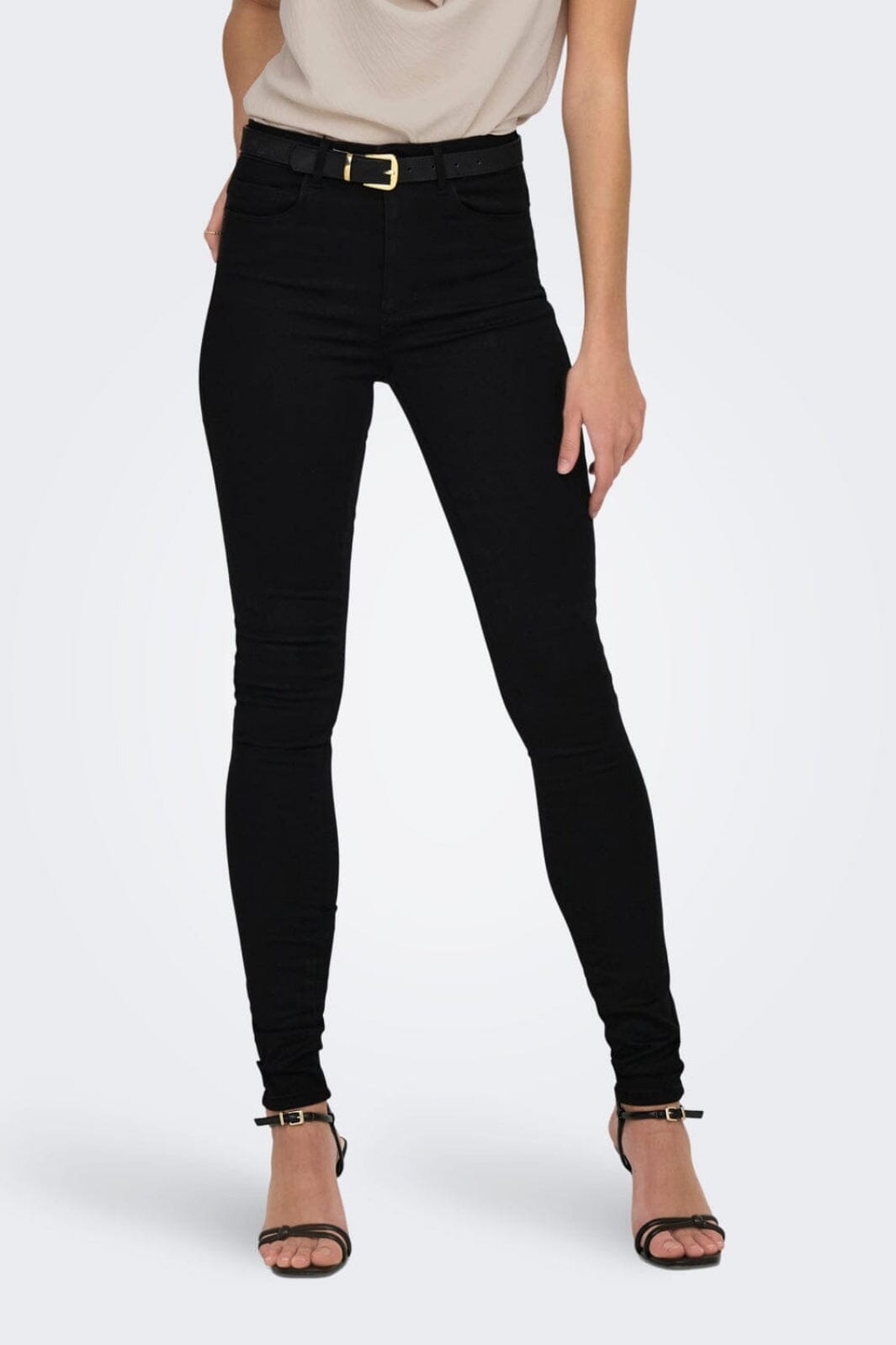 Schwarze Jeans von Only mit hoher Taille und Skinny Fit. Die enge Passform reicht von der Hüfte bis zum Knöchel, und die Jeans haben einen Reißverschluss vorne.