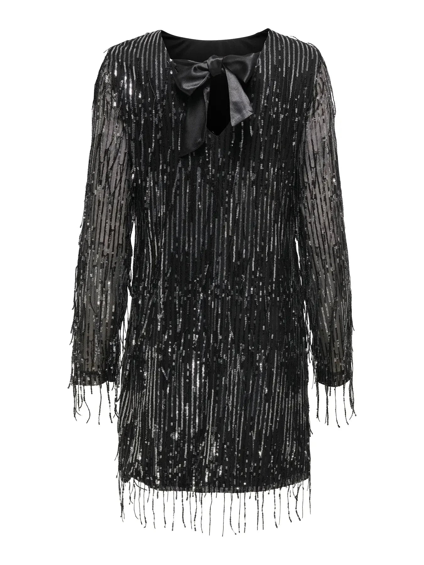 Only Onlspacy Ls Sequins Bow Dress Farbe: 4877201 Black W. Silver Sequins