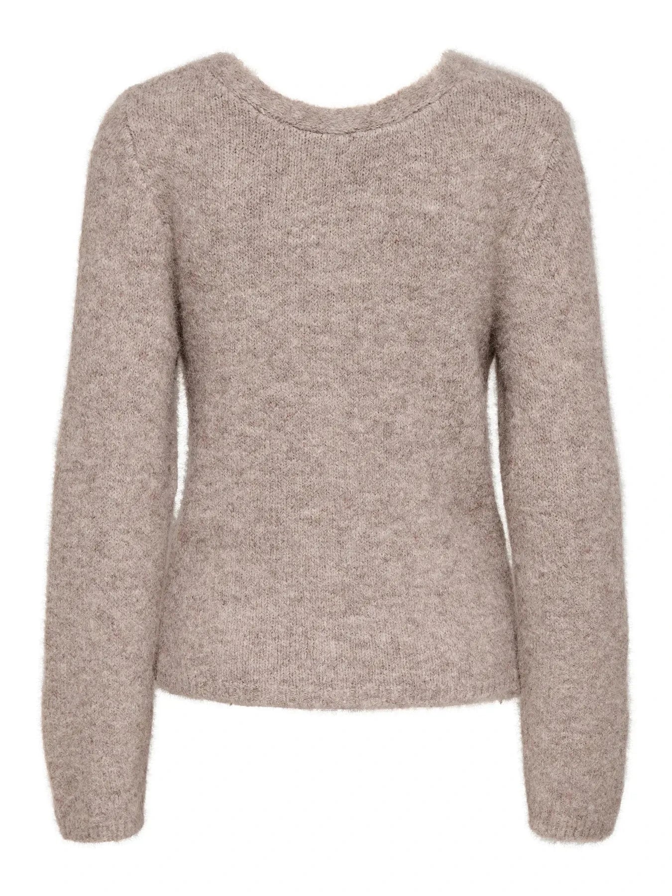 Beiger Strickpullover von Only mit melierter Oberfläche. Der Pullover ist wendbar mit sowohl V-Ausschnitt als auch Rundhalsausschnitt.