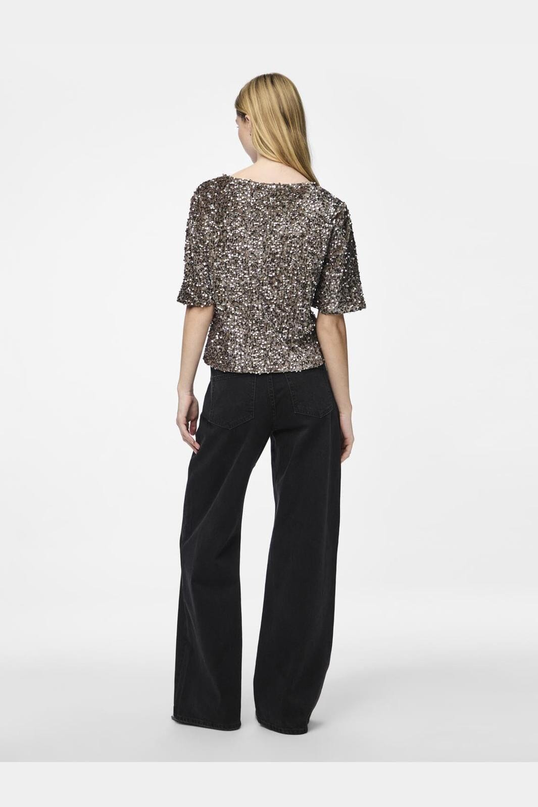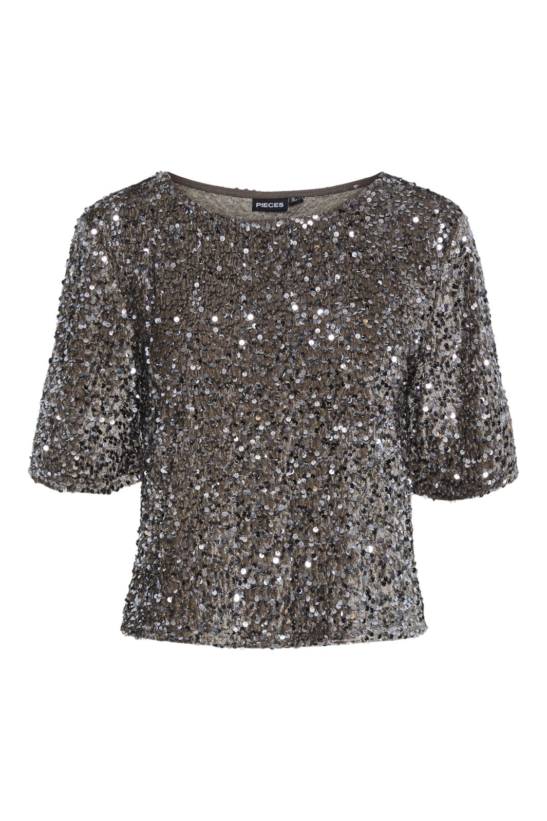 Pieces Pckam Ss Top Farbe: 4641548 Morel Silver Sequins