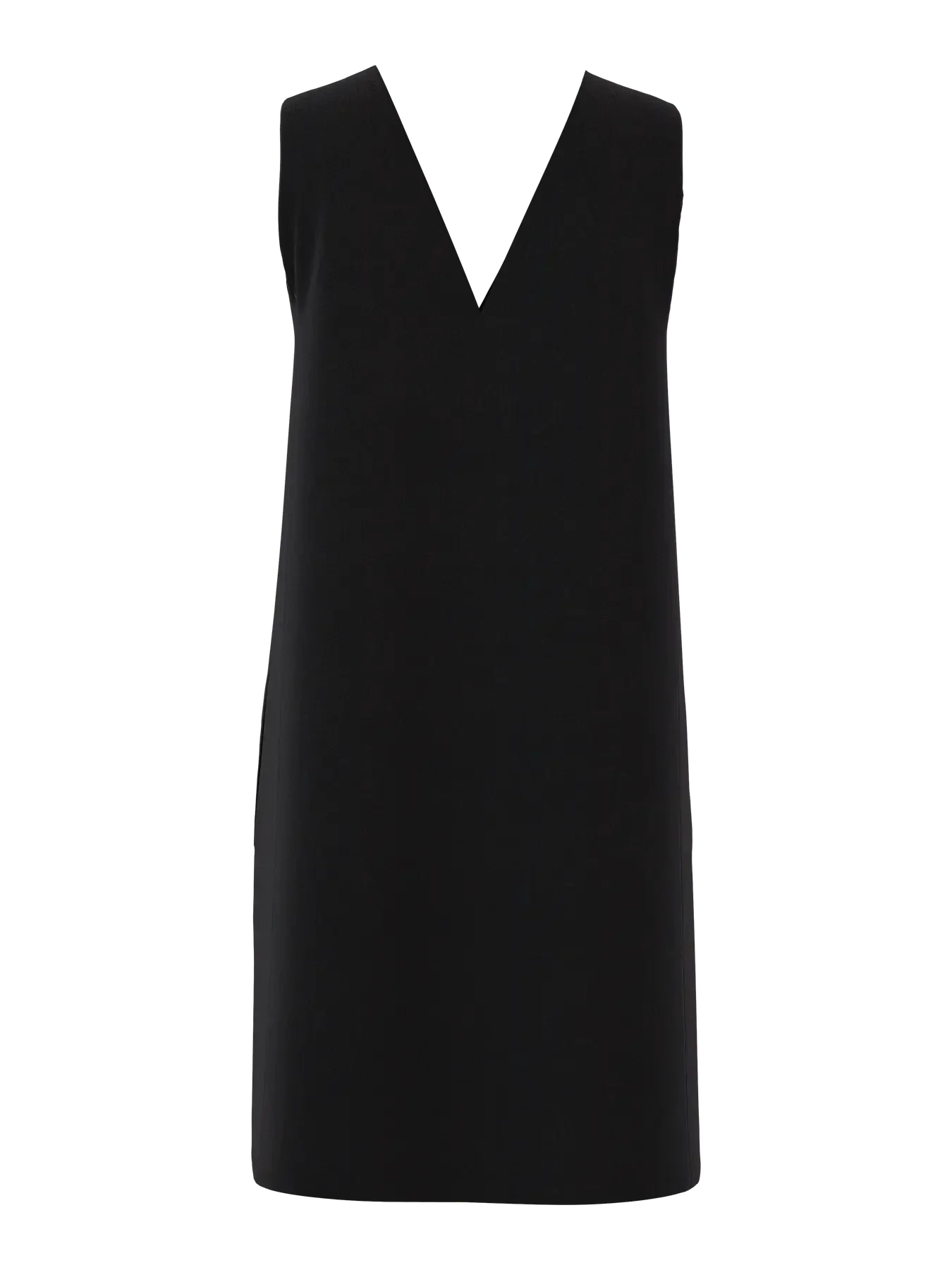 Schwarzes Spenzerkleid von Pieces mit V-Ausschnitt vorne und hinten. Das ärmellose Kleid hat eine lockere Passform und reicht bis zum Knie.