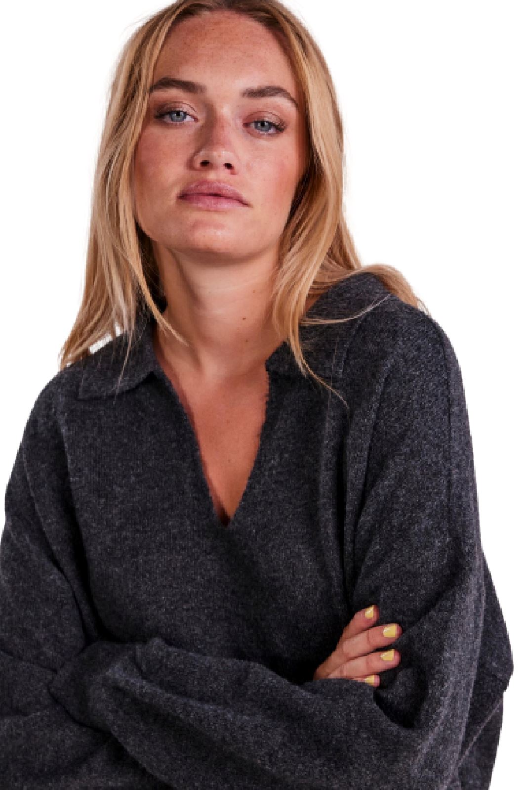 Pieces Pieces - Pcnoola Ls Oversize Polo Knit Farbe: Dark Grey Melange