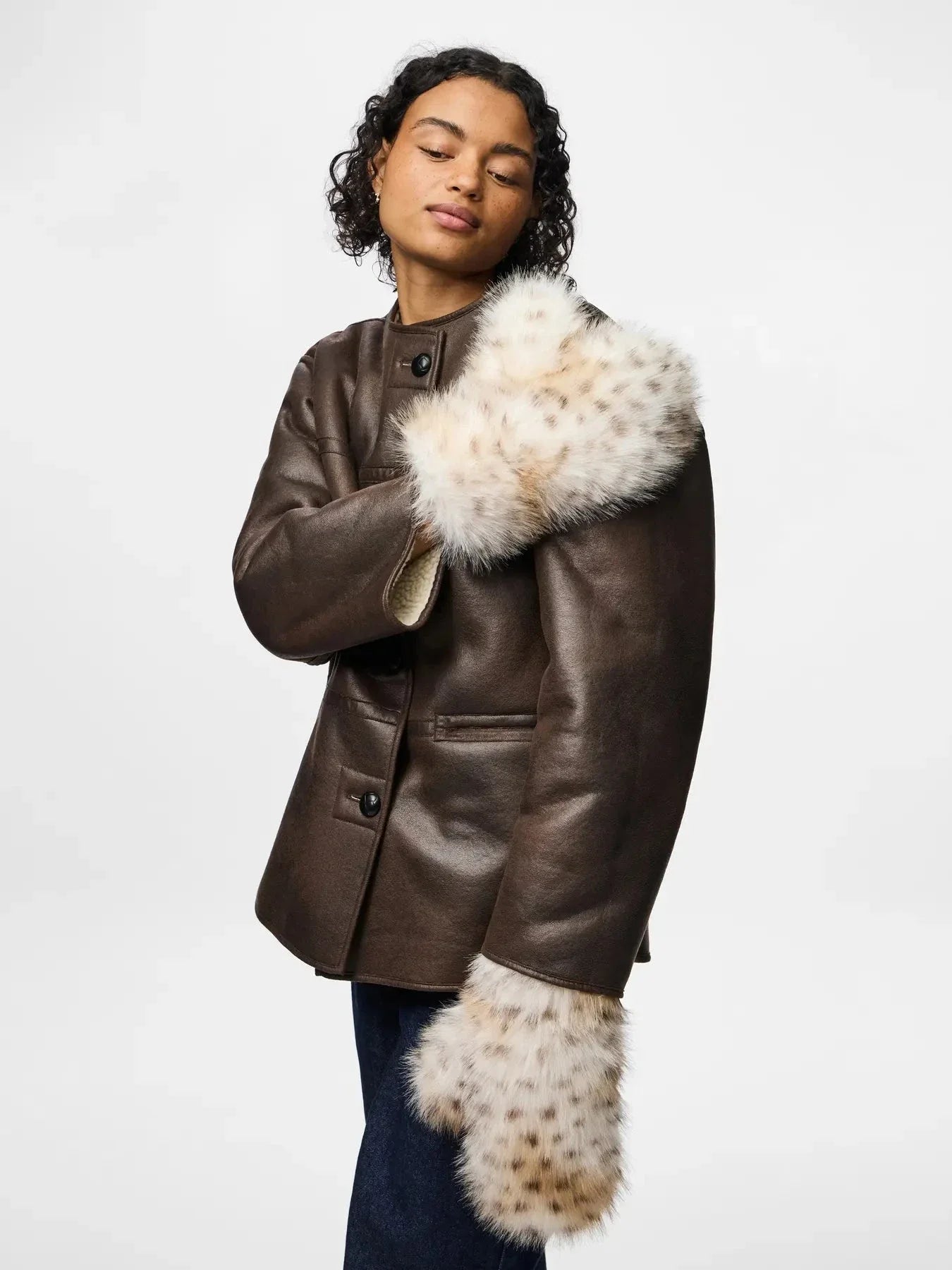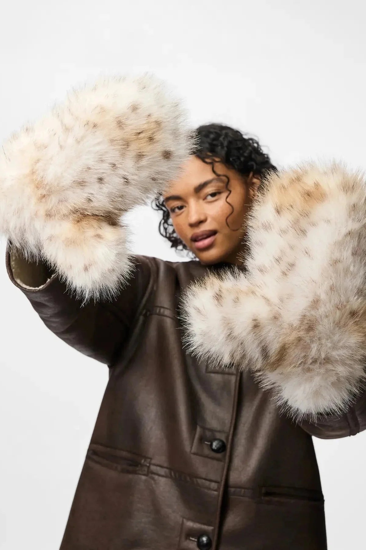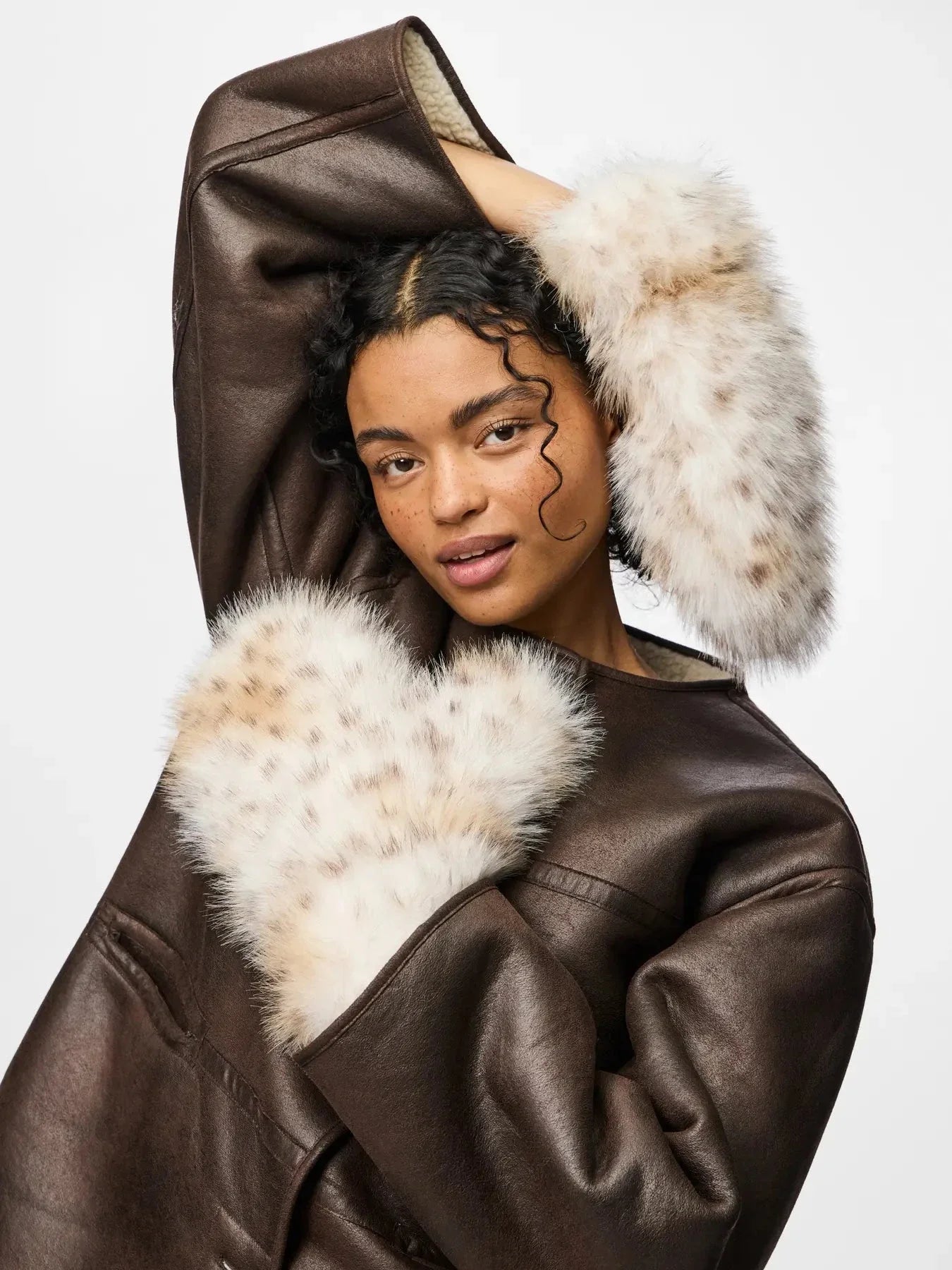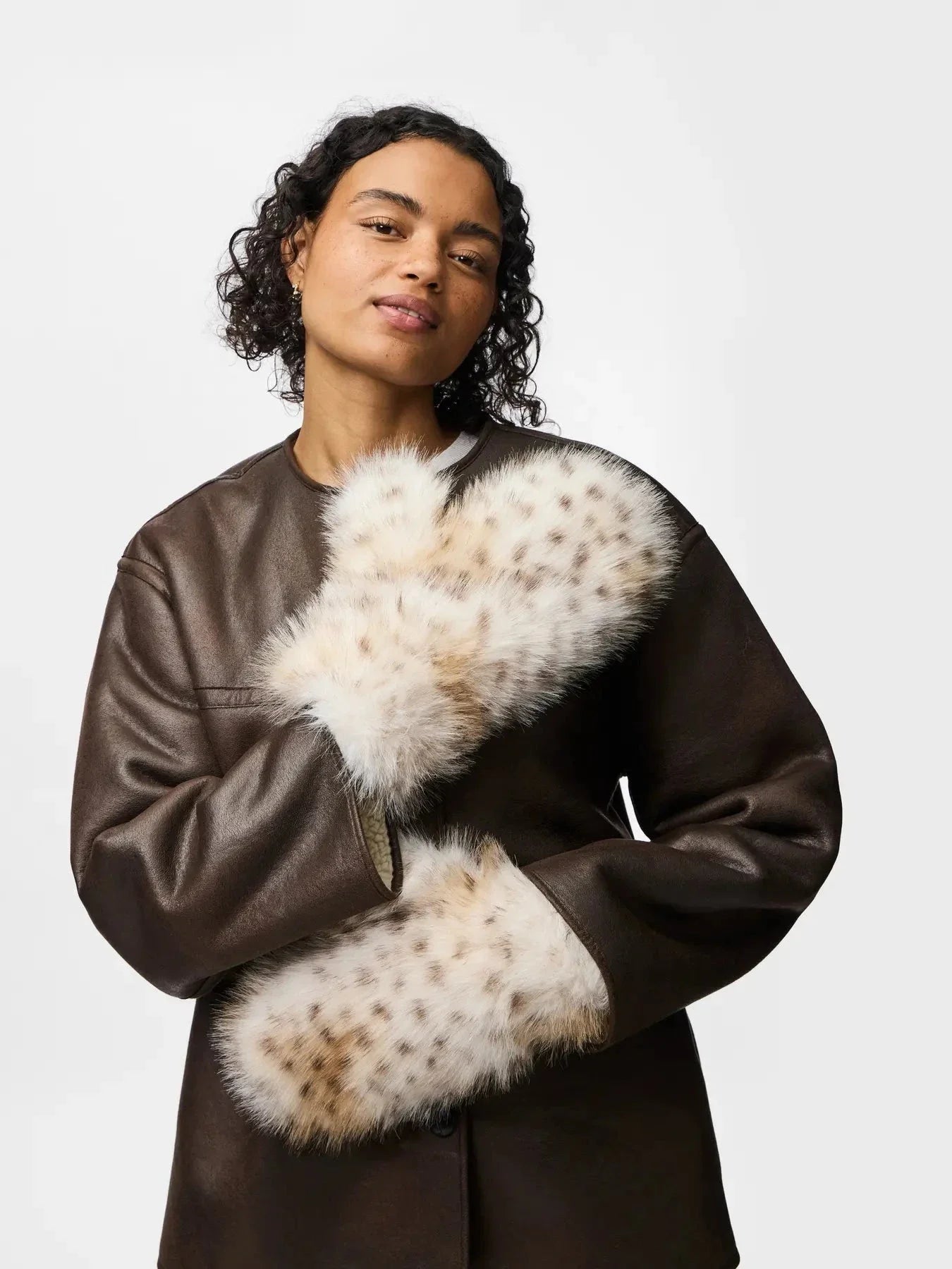 Pieces Pcplush Fluffy Mittens Farbe: 5023213 Cloud Dancer Leopard