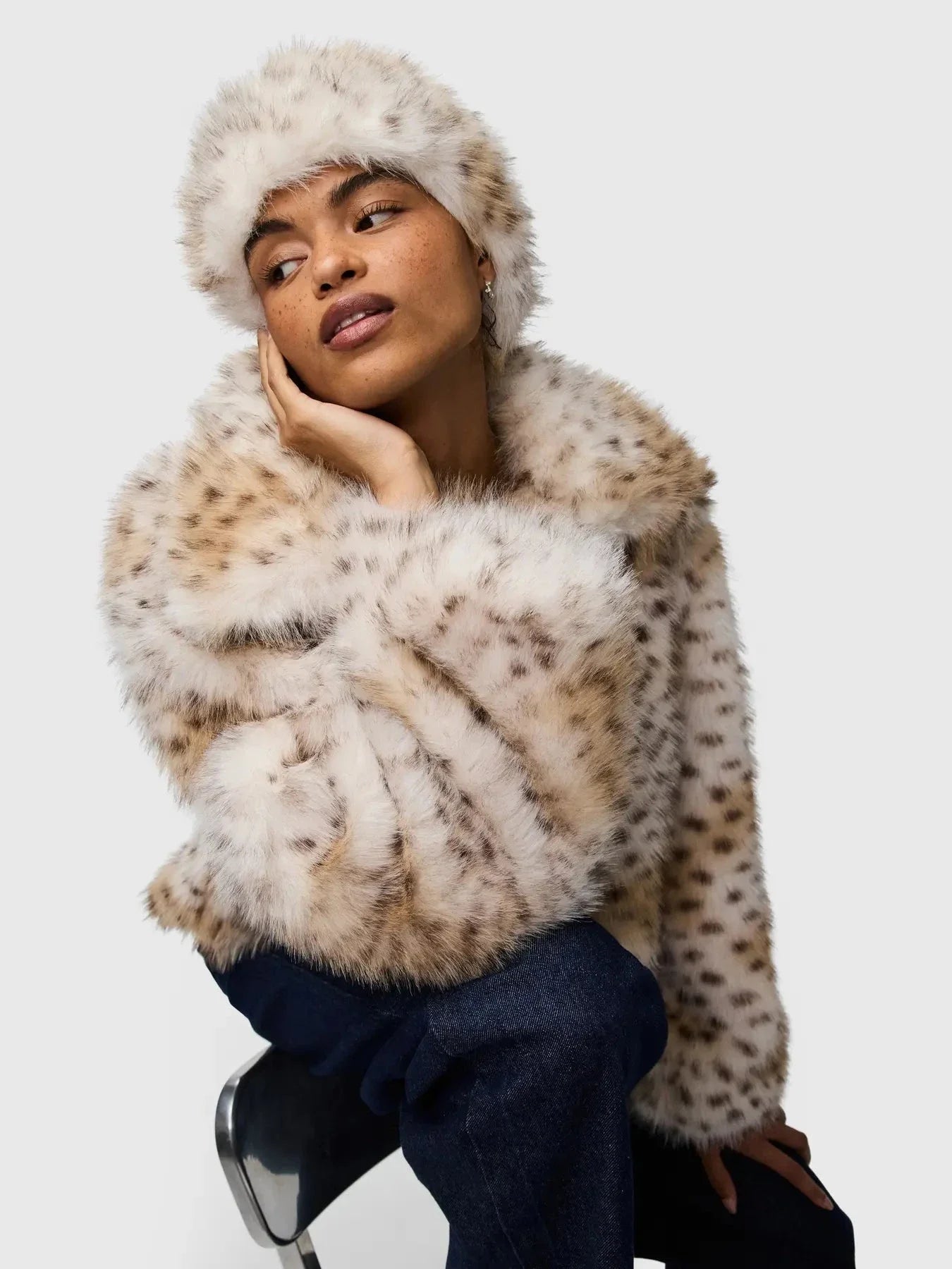 PiecesPcplush Short Fluffy JacketFarbe: 5023207 Cloud Dancer Leopard