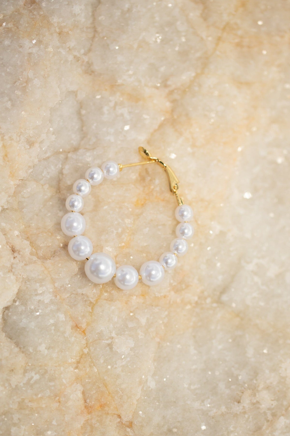 Ohrringe von Rooted mit einem kreisförmigen Design, das mit Perlen besetzt ist. Die Ohrringe bestehen aus Messing und haben ein vergoldetes Finish.