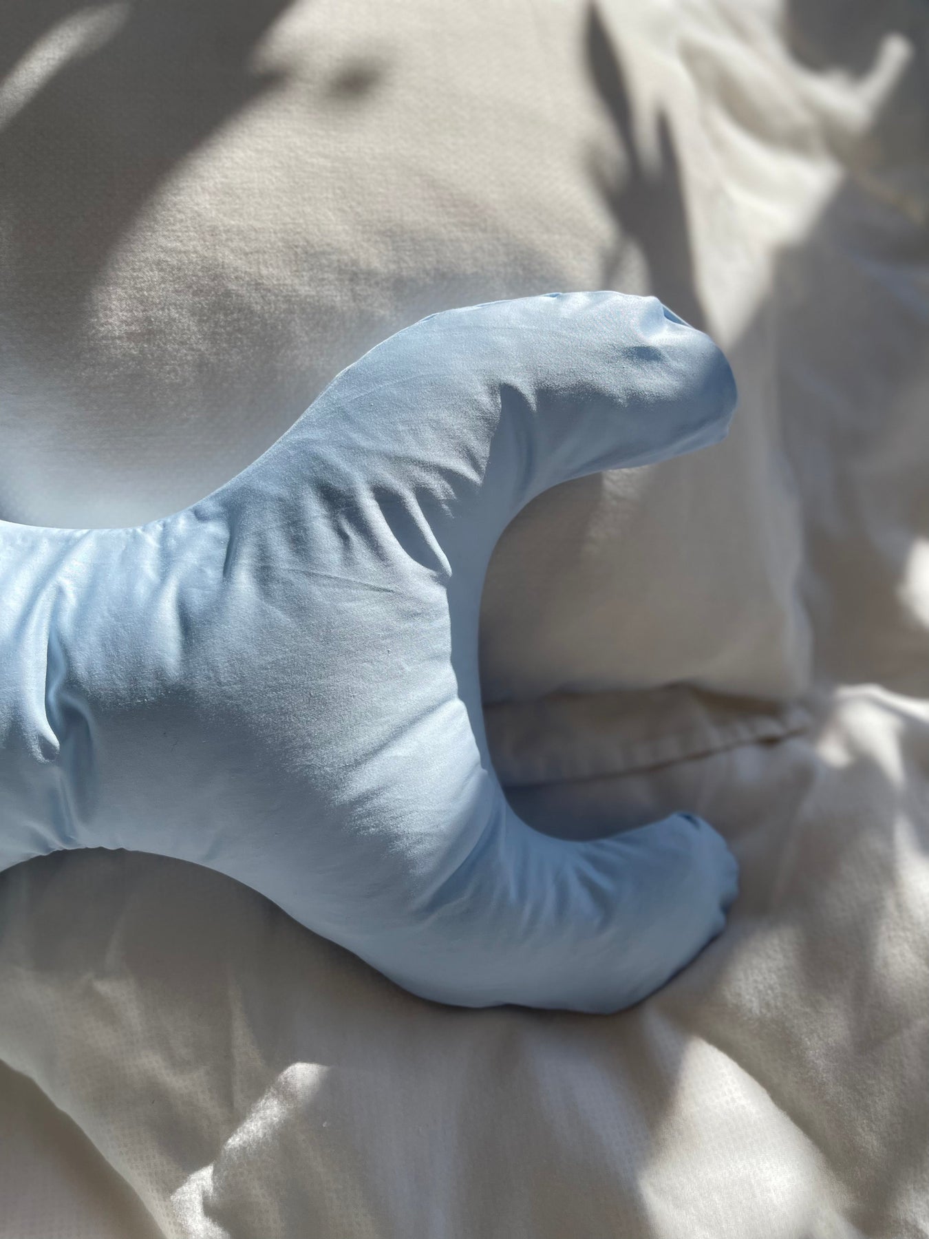 Kleine Kissen mit X-förmigem Design und hellblauer Hülle aus 100 % Baumwolle. Das Kissen ist mit synthetischen Fasern gefüllt, die sowohl bakterienresistent als auch feuchtigkeitsabweisend sind.