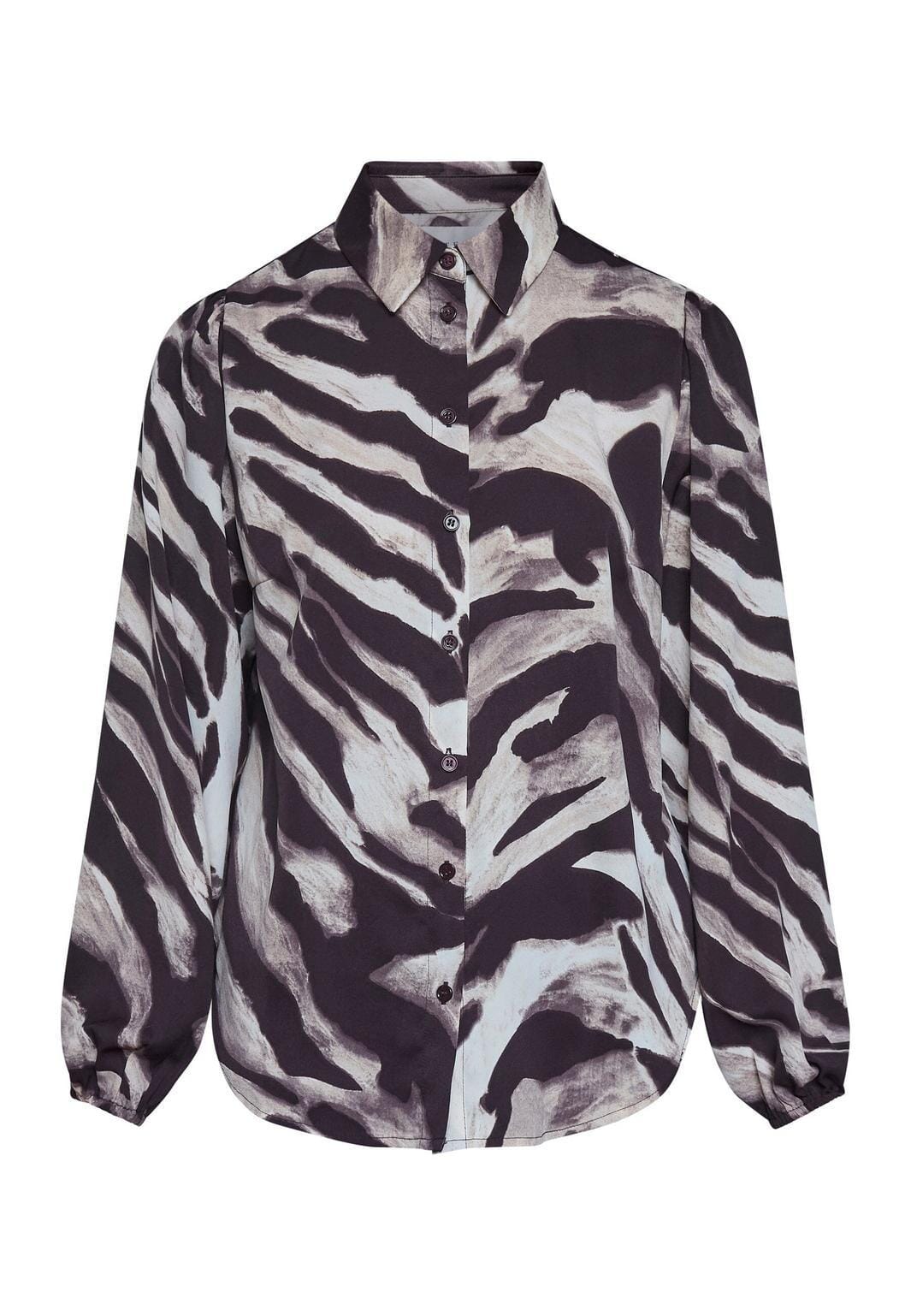 Bluse von Sisters Point mit grafischem Streifenmuster in Braun- und Beigetönen. Die Bluse eignet sich sowohl für entspannte Tage als auch für festliche Anlässe.