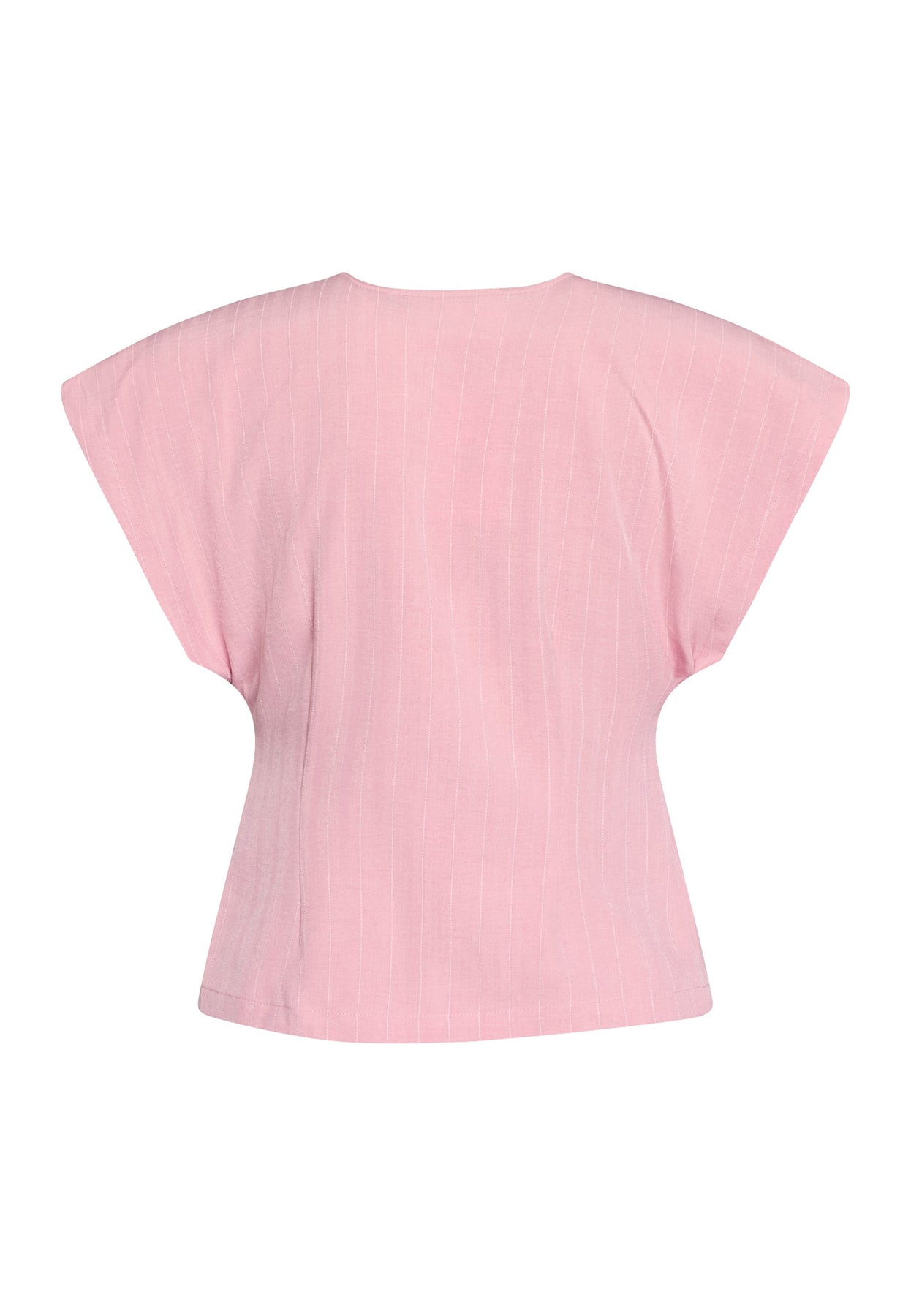 Rosa Weste von Sisters Point mit Nadelstreifenmuster. Die Weste besteht aus 90 % Polyester, 7 % Viskose und 3 % Elasthan und eignet sich sowohl für formelle Anlässe als auch für den Alltag und festliche Gelegenheiten.