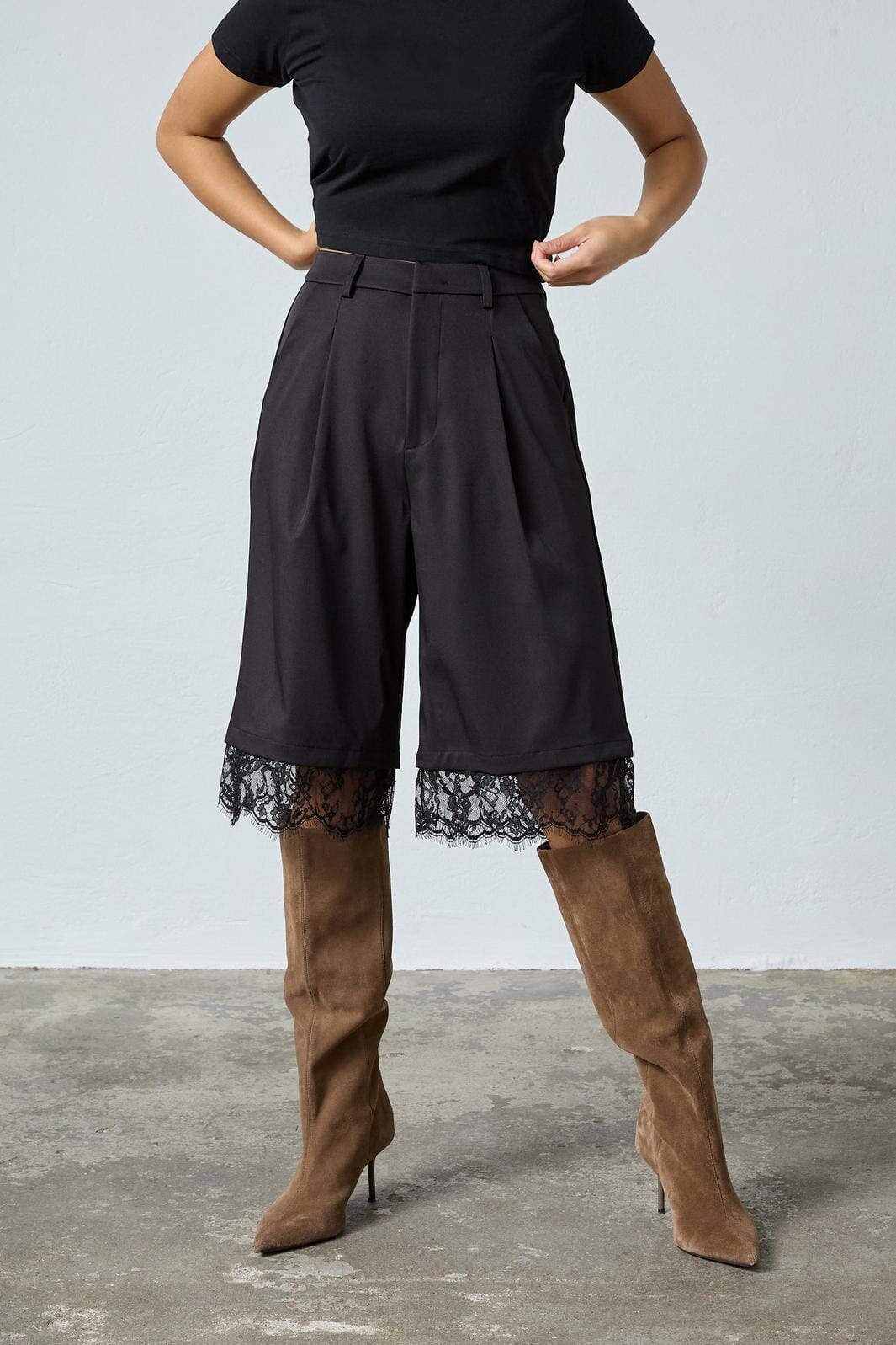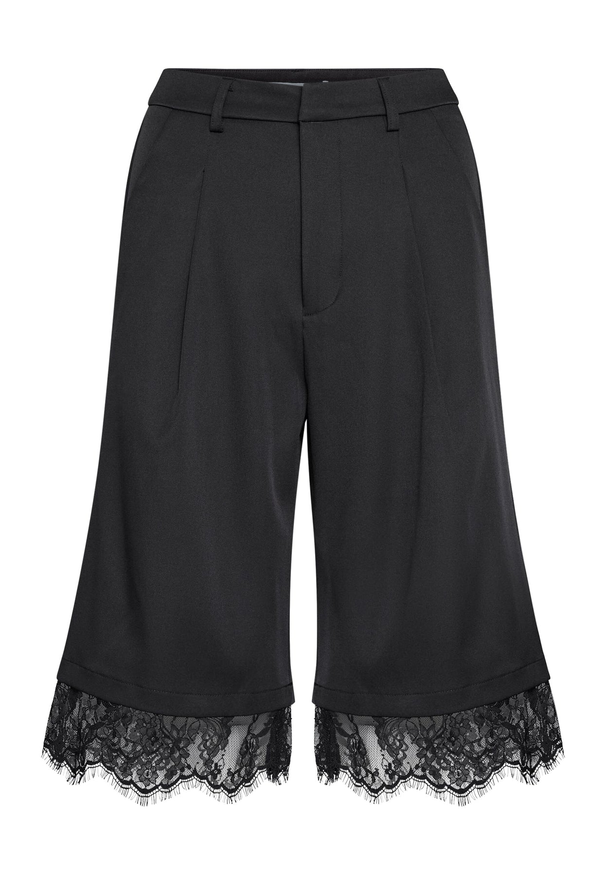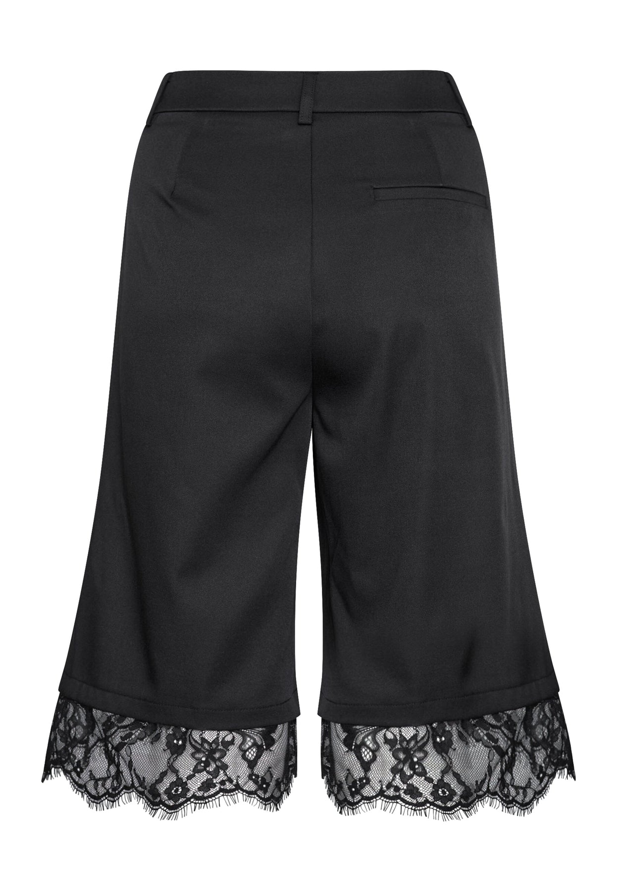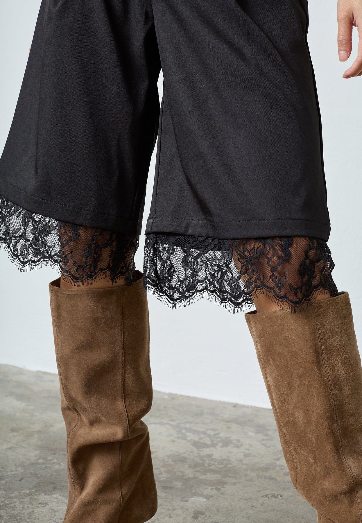 Schwarze Shorts von Sisters Point mit Spitzendetails an den Beinöffnungen. Die Shorts haben eine lockere Passform und reichen bis knapp über das Knie.