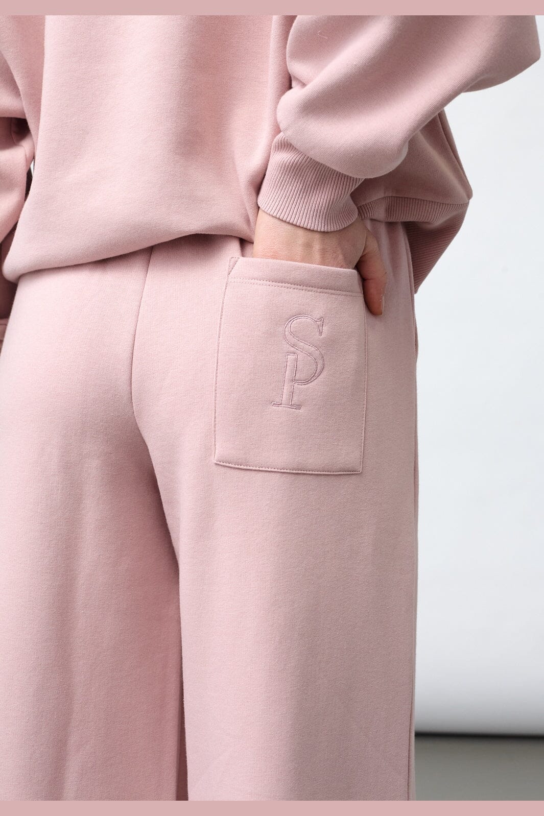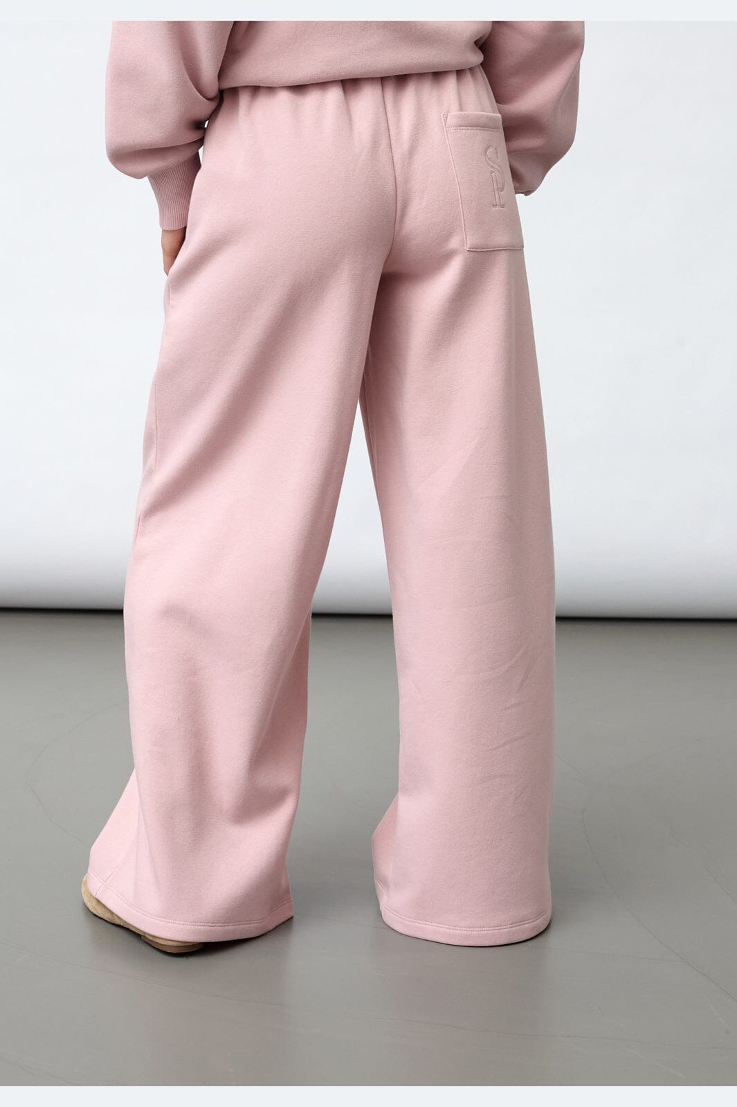 Flieder-rosa Hose von Sisters Point mit hoher Taille und einem gestickten SP-Logo auf der Gesäßtasche. Die Hose hat ein weit geschnittenes Bein-Design und eine lockere Passform.
