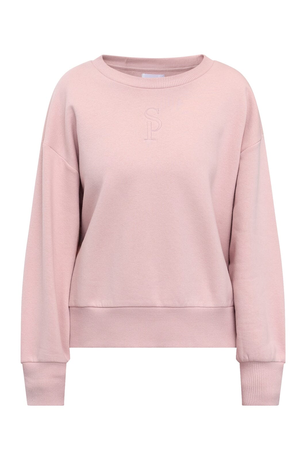 Lila Sweatshirt von Sisters Point, hergestellt aus 65 % Baumwolle und 35 % Polyester. Das Sweatshirt hat ein gesticktes „SP“-Logo auf der Brust.
