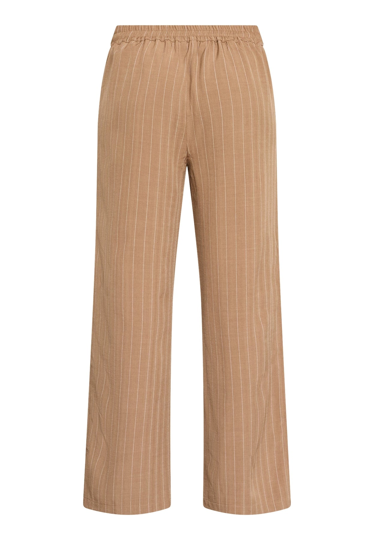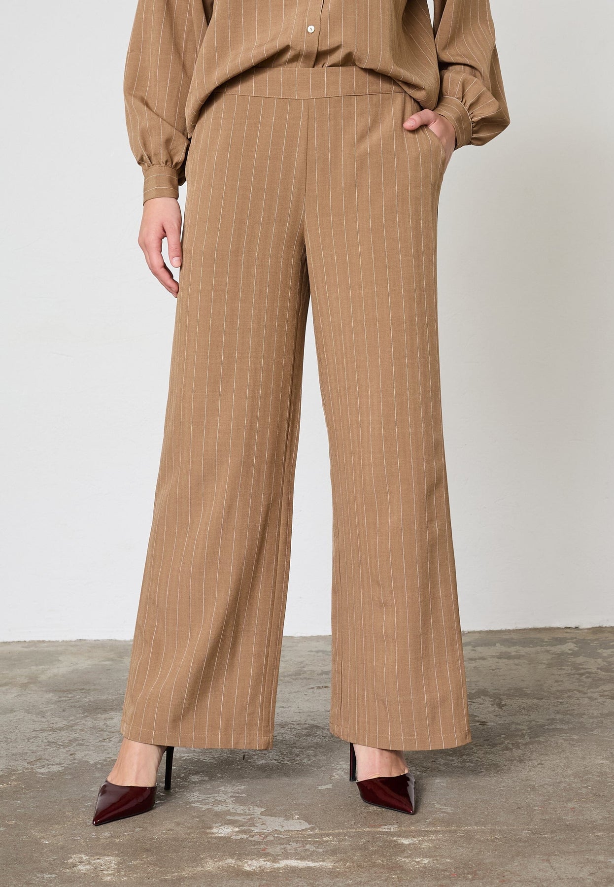Braune Nadelstreifenhose von Sisters Point mit weitem Bein und hoher Taille. Die Hose eignet sich für Partys, den Alltag und formelle Anlässe.