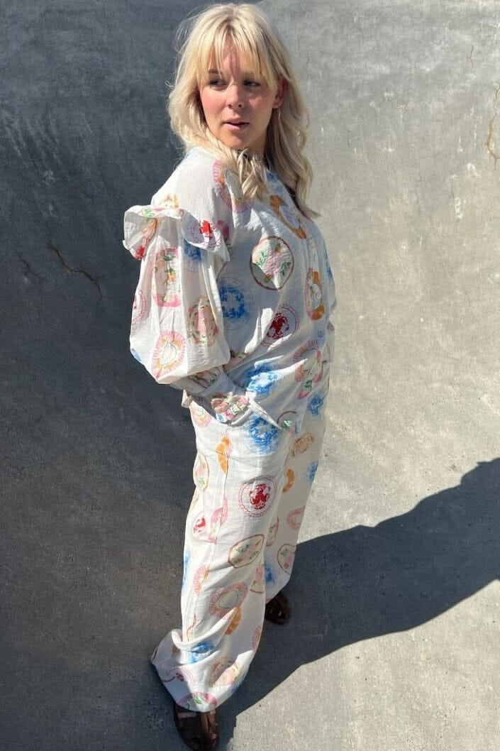 Hose von Stories From The Atelier By Copenhagen Shoes mit porzellaninspiriertem Print in mehreren Farben. Die weiten Beine und die lockere Passform sorgen für einen entspannten Look.